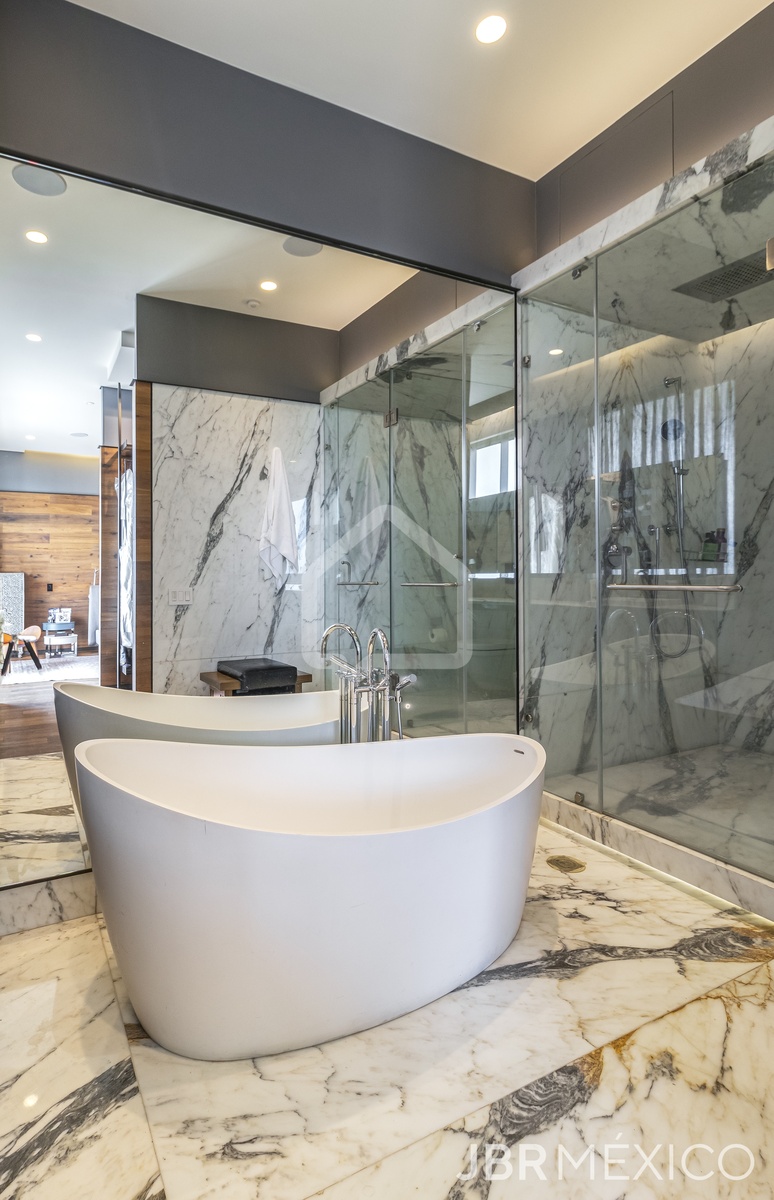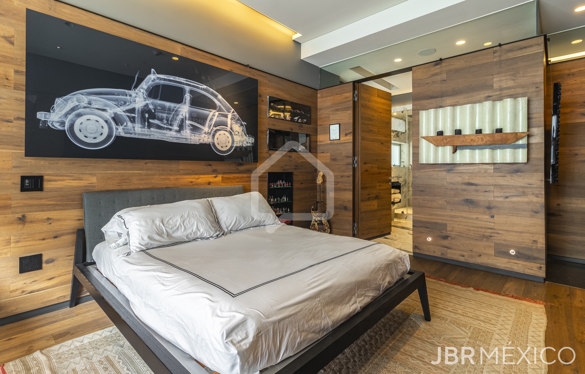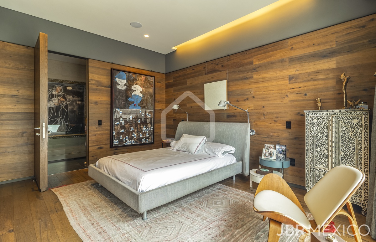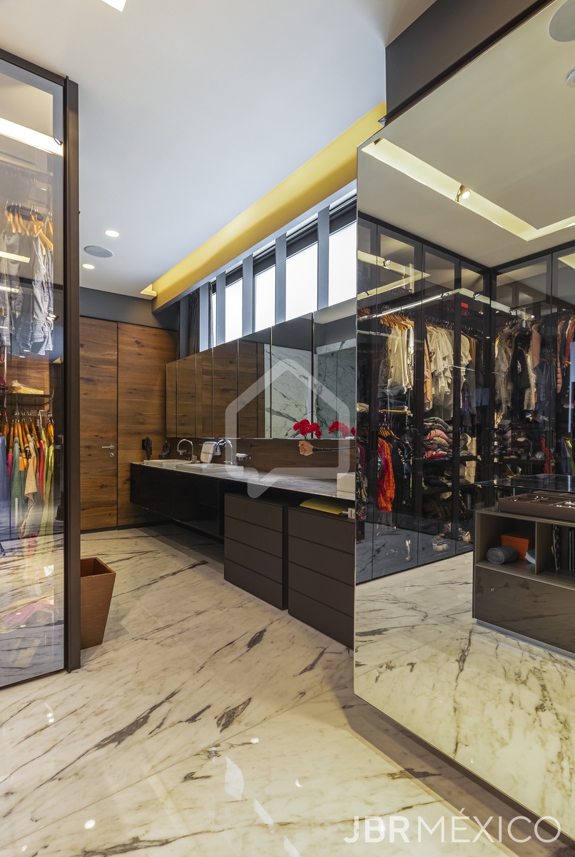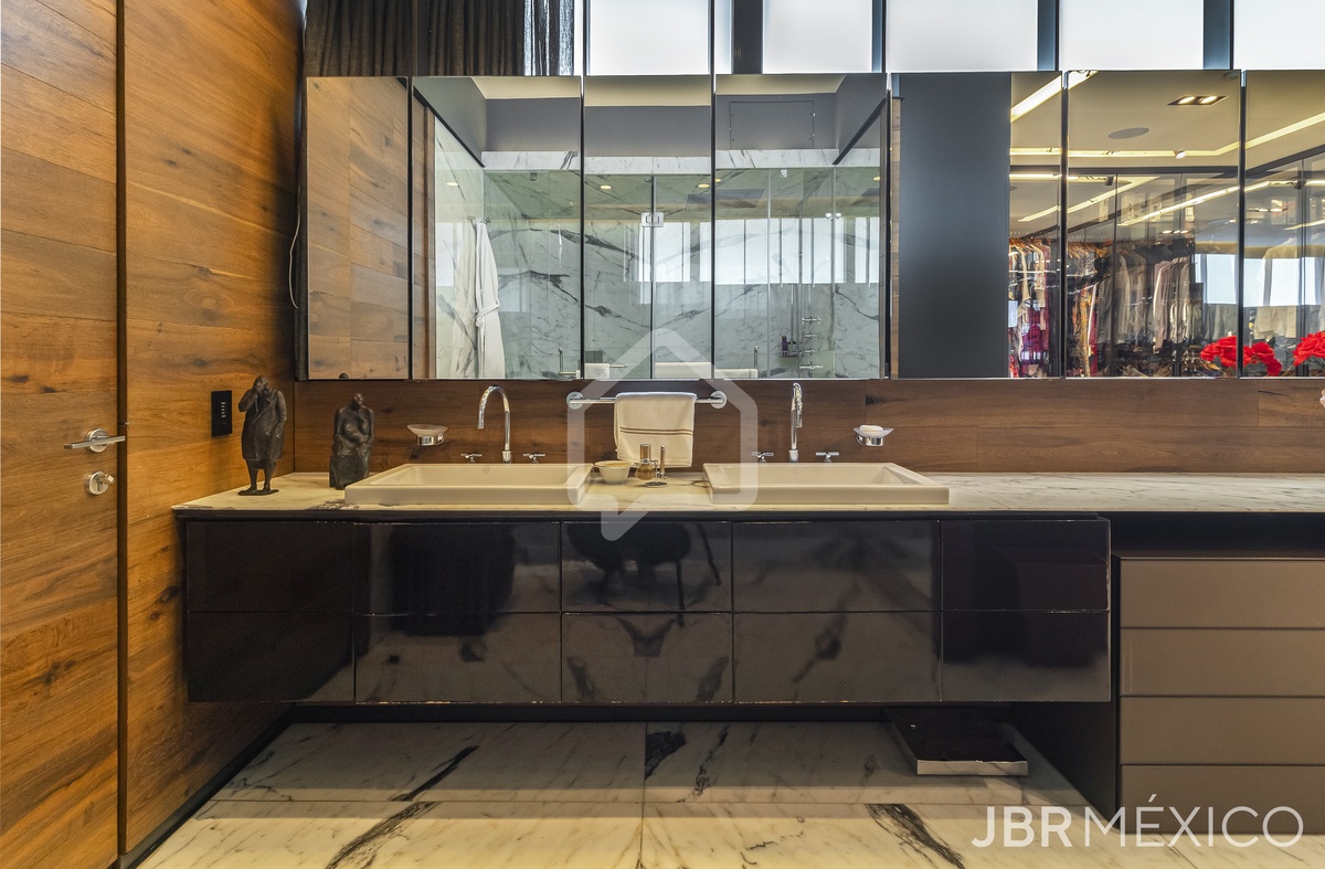 En el piso familiar, la recámara principal ofrece una vista de piso a techo al Bosque de Chapultepec, baño completo con iluminación natural, doble lavamanos y un vestidor independiente con carpintería de alta gama y tecnología de última generación.