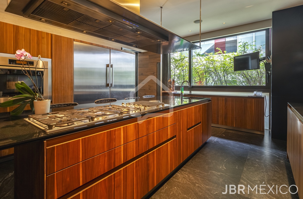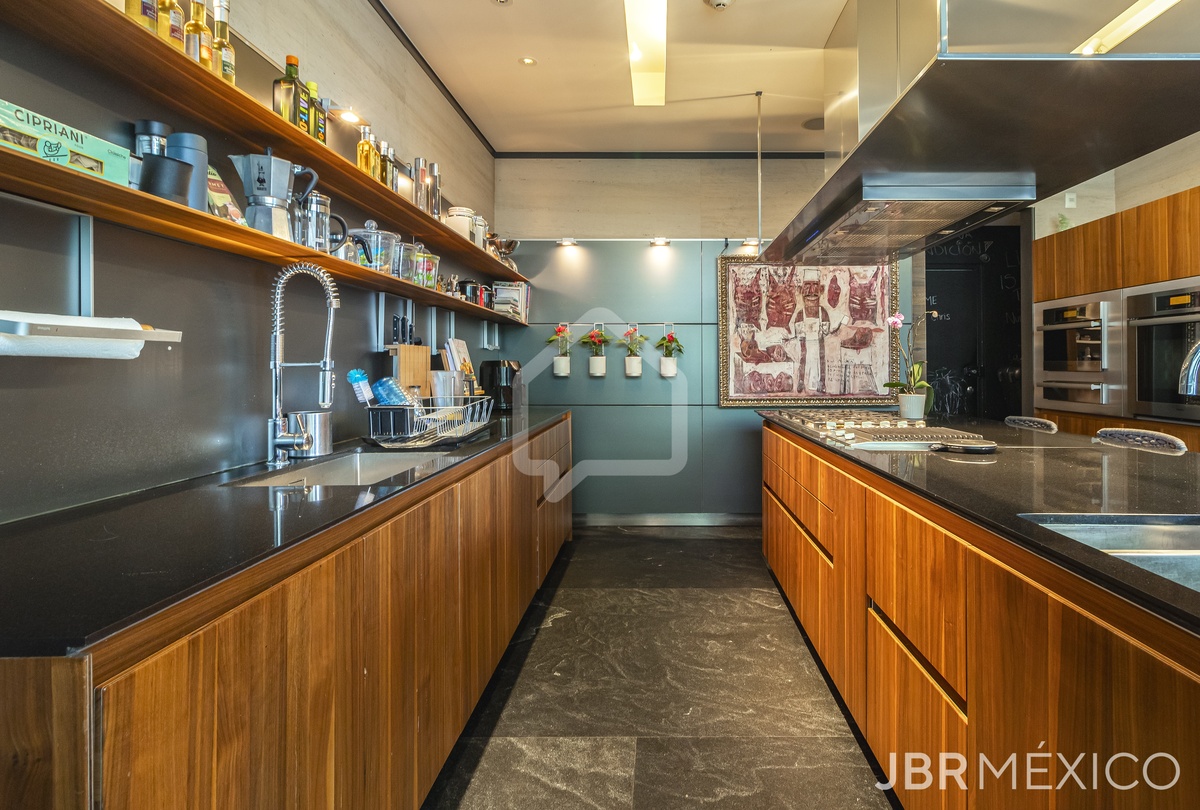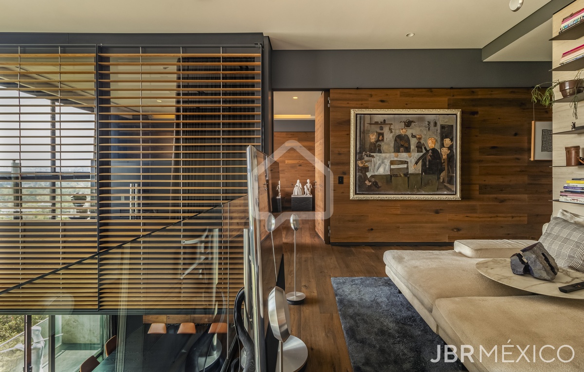 En ese mismo nivel se encuentra una acogedora sala de TV, una cocina cerrada con ventilación natural y electrodomésticos empotrados, así como un cuarto de máquinas donde se aloja el sistema inteligente del departamento (Alexa, audio, calefacción hidráulica, entre otros).