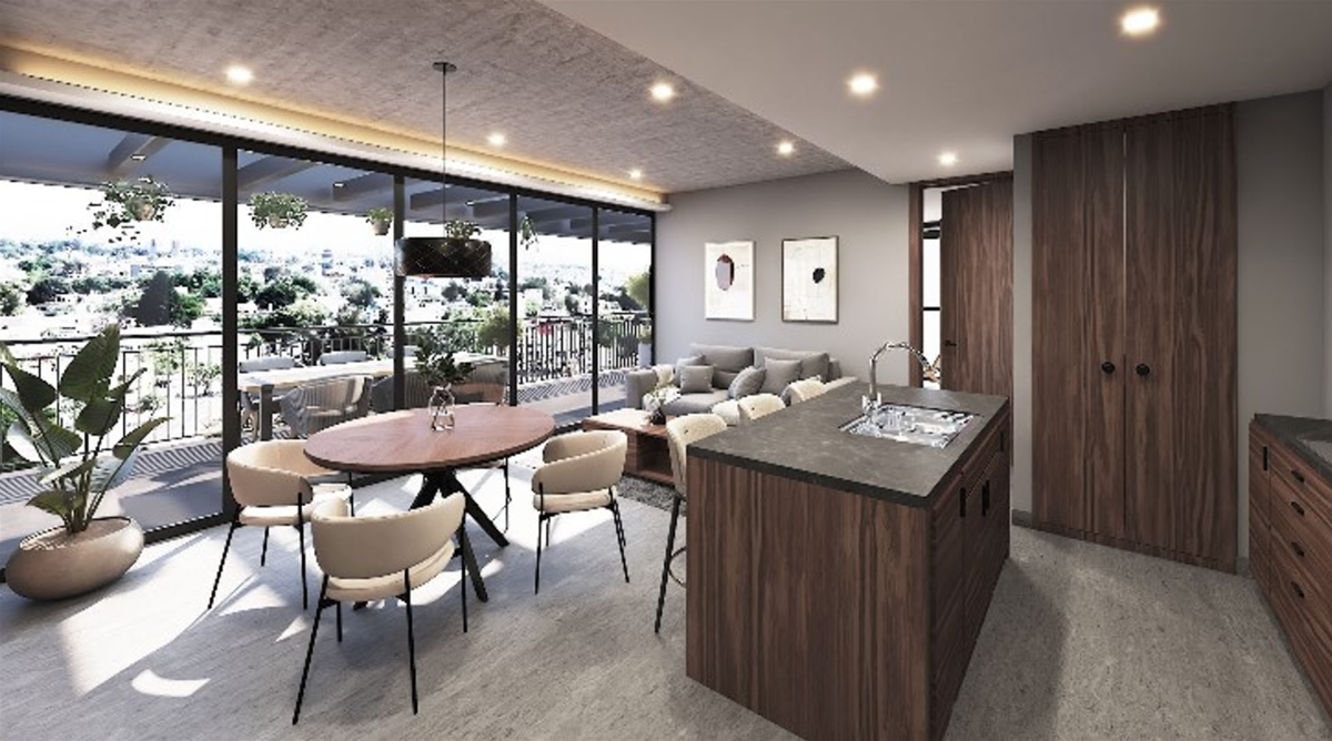 Departamento en venta en Providencia - Ontario, ideal para quienes buscan confort, ubicación privilegiada y exclusividad. Ubicado en el quinto nivel, cuenta con 112.71 m² de terreno y 76.74 m² de construcción, distribuidos en una moderna y funcional planta. Ofrece sala, comedor y cocina integral con barra de granito, equipada con melamina de 18 mm. La recámara principal incluye un amplio walking clóset y baño completo, mientras que la segunda recámara cuenta con clóset y acceso a un segundo baño completo. También dispone de área de lavado, terraza privada y estacionamiento para 2 autos.