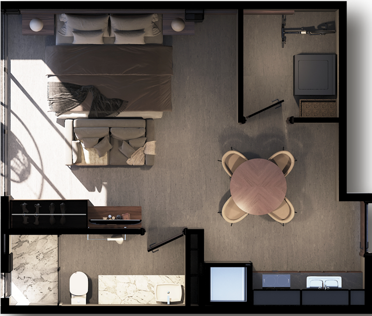Departamento en venta en Providencia - Ontario, ideal para quienes buscan confort, ubicación privilegiada y exclusividad. Ubicado en el septimo nivel, cuenta con 39.64 m² de superficie, distribuidos en una moderna y funcional planta. Ofrece sala, comedor y cocina integral con barra de granito, equipada con melamina de 18 mm. La recámara incluye un clóset y acceso a un baño baño completo. También dispone de área de lavado.