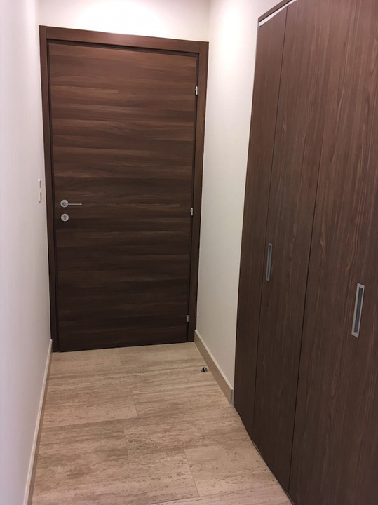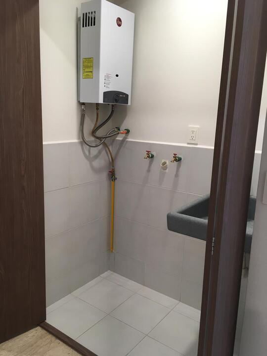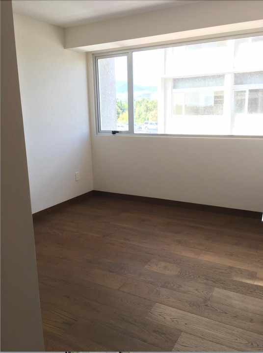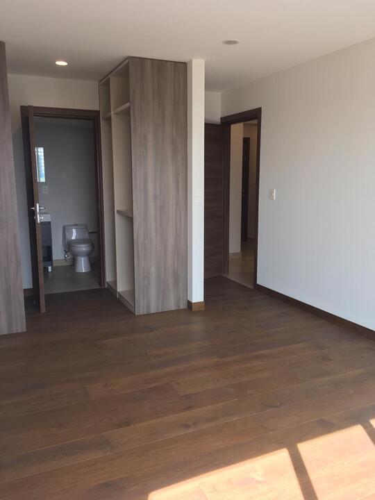 Departamento con ventanales de pared a pared, con 2 recamaras, la principal con vestidor y baño completo, la segunda recamara con baño completo en el pasillo. Cocina con barra de granito, estufa, campana y microondas. Área de lavado. Pisos de madera de ingeniería en las recamaras y de mármol en la estancia, baños y pasillo.