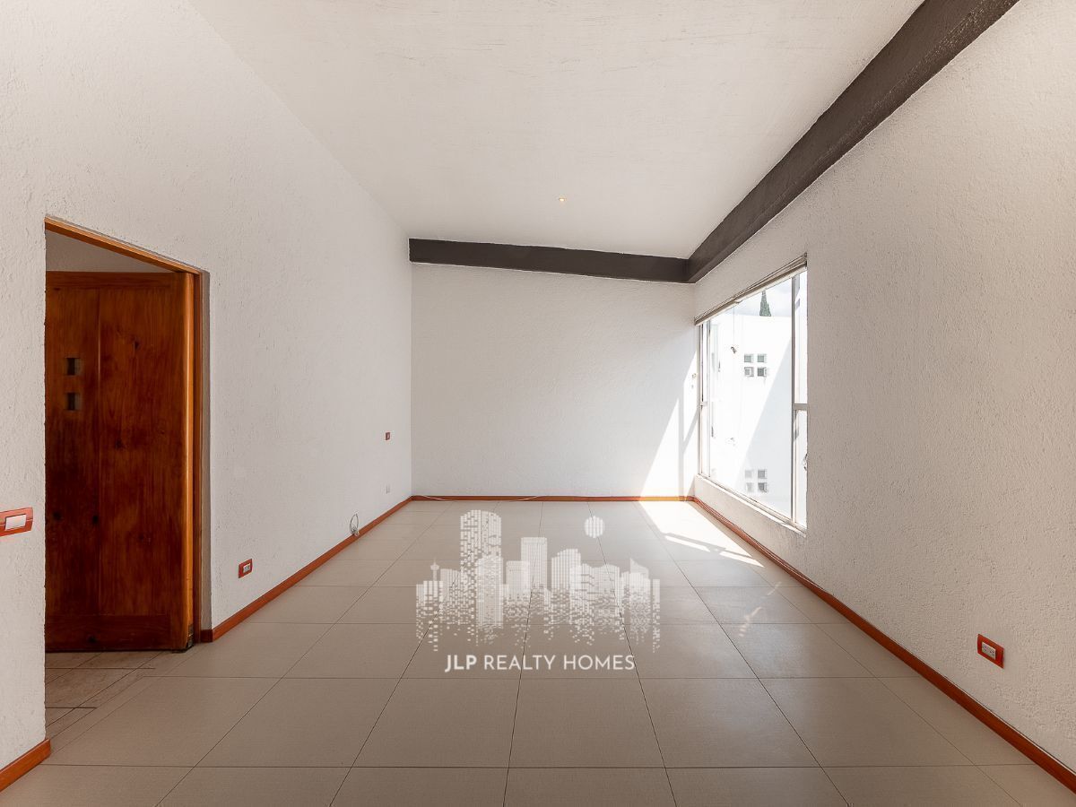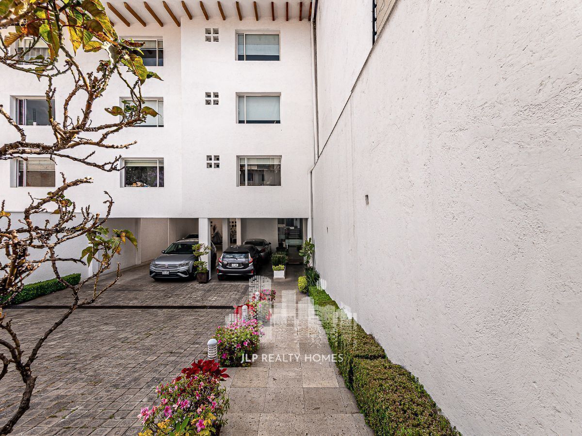 Precioso departamento, impecable, iluminado, 130 m2, sala y comedor, cocina equipada con barra, sala de tv muy agradable, 2 recámaras, 2 baños completos, área de lavado con baño, 2 estacionamientos, seguridad 24 horas. Mant $2,800.00