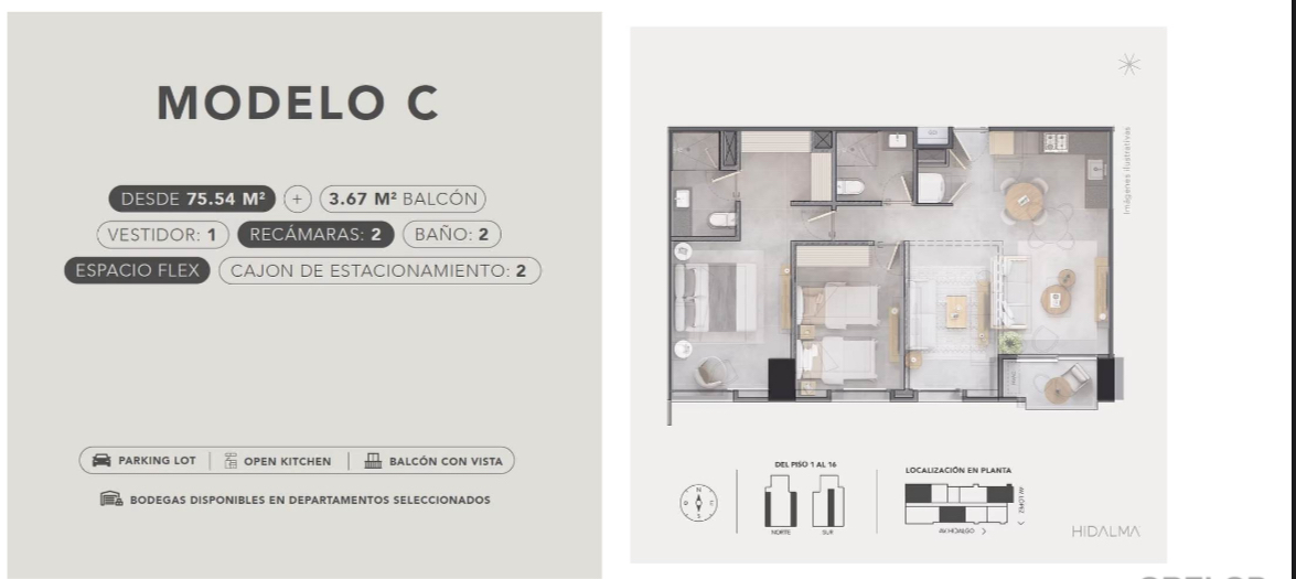 Cuenta con sala ,comedor ,cocina ,dos recámaras, sala y la mejor vista a la ciudad desde su balcón.