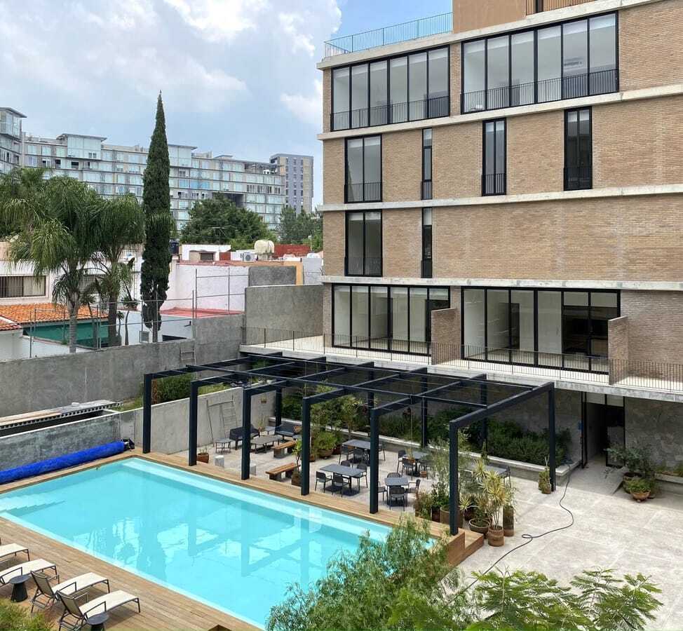 Incluye dos cajones de estacionamiento y disfruta de amenidades como alberca, gimnasio, estacionamiento para visitas y seguridad 24 horas.