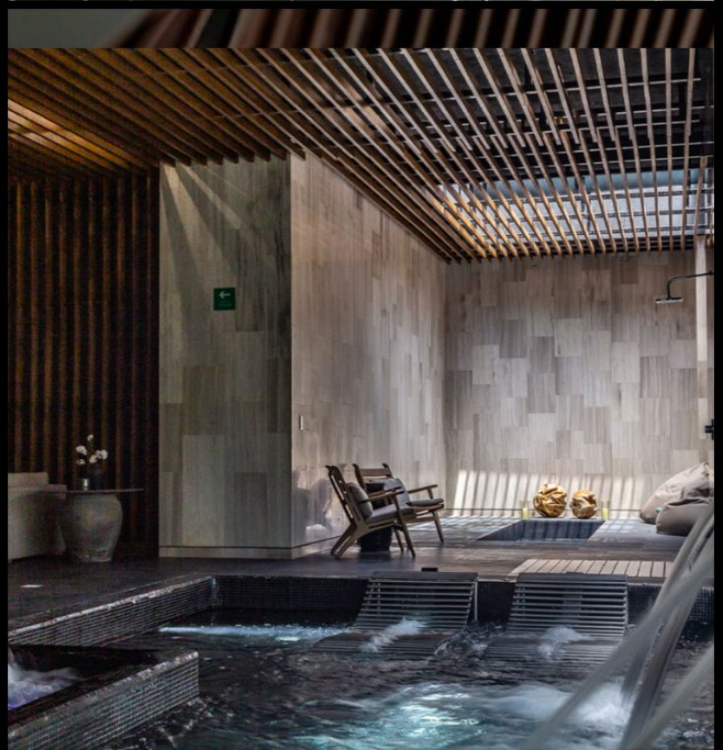 • Alberca techada con carriles de nado y área de descanso con camastros.