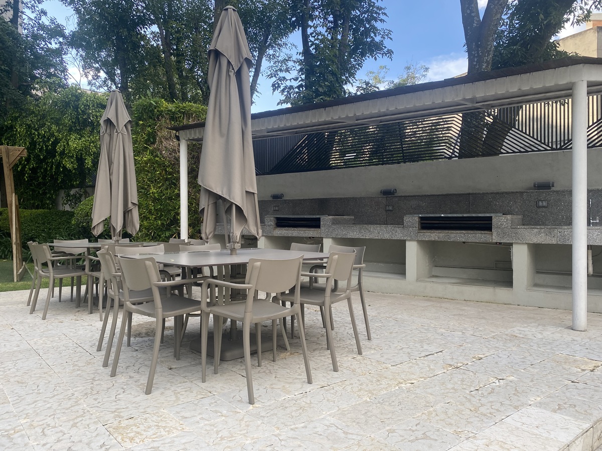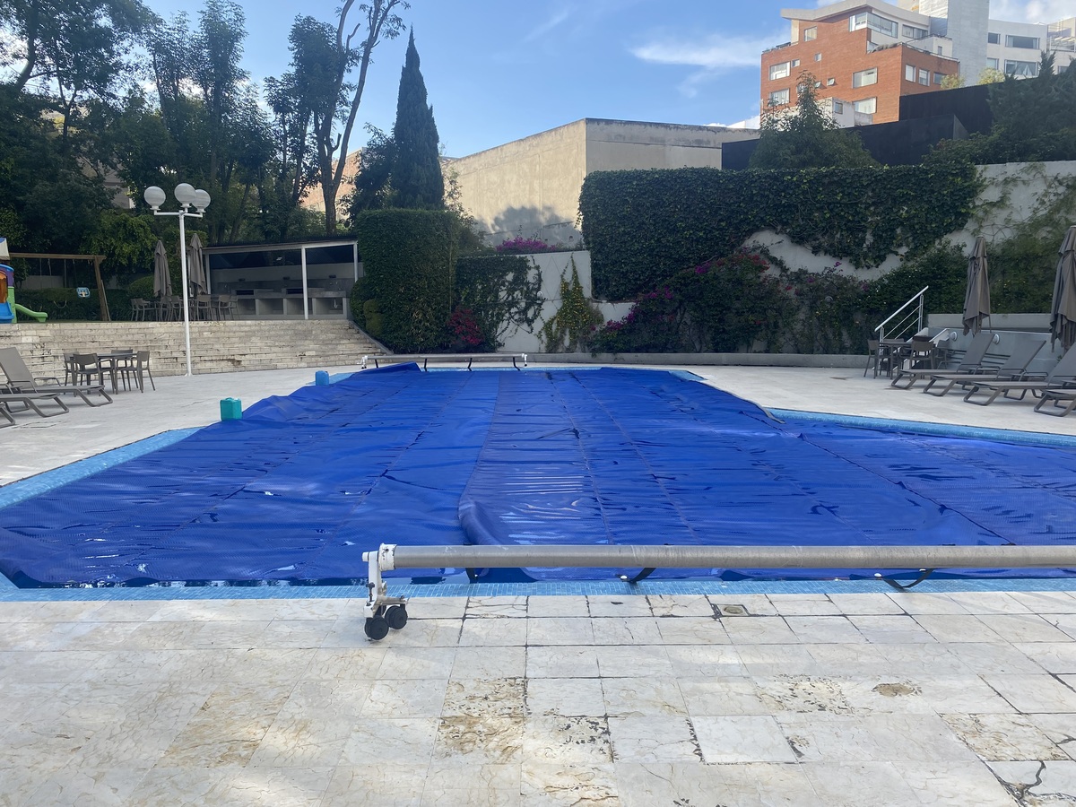 Amenidades: Alberca exterior , área de asadores con mobiliario, jardin, juegos infantiles, cancha de tenis y de basket, salon de fiestas grande con cocina , salon de fiestas mediando con cocina, baño para visitas, gym, sauna, jardin, área para mascotas, lobby