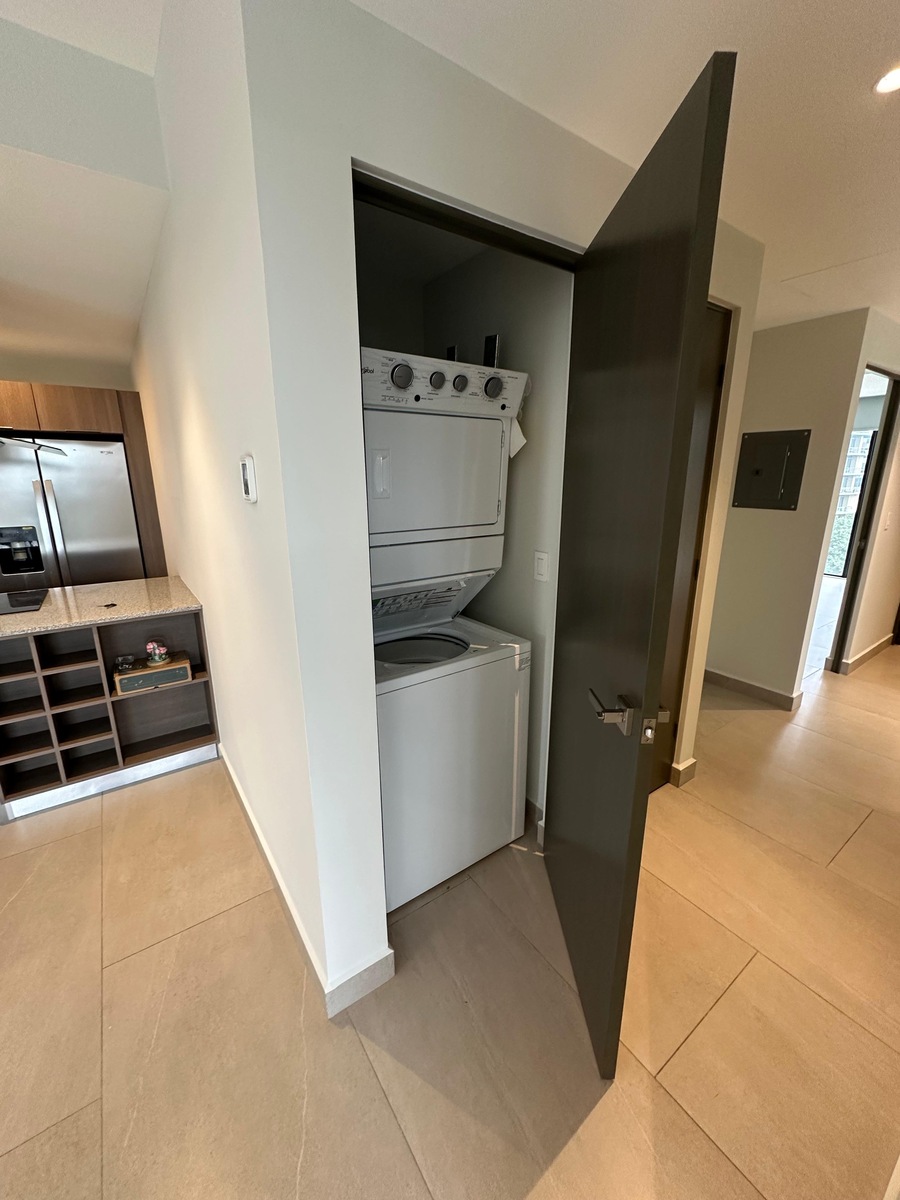 El departamento se entrega completamente equipado, con cocina integral, microondas, refrigerador, centro de lavado (lavadora y secadora) ademas con aparato de clima central seccionado por area.