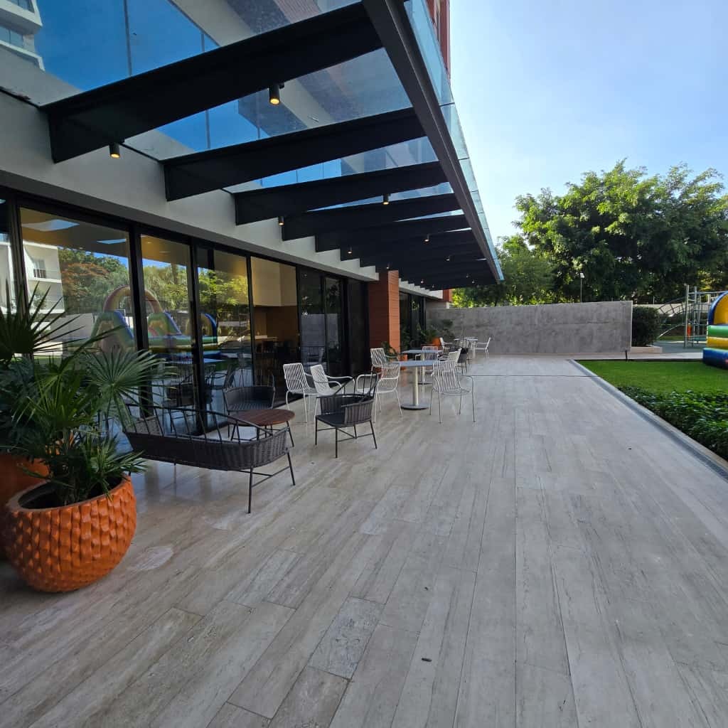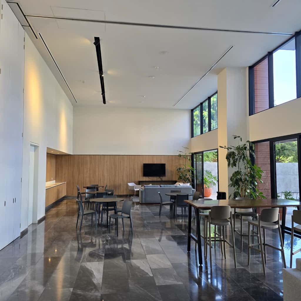 El complejo ofrece amenidades de primer nivel: gimnasio, ludoteca, área de usos múltiples, juegos infantiles, alberca, vapor, estacionamiento para visitas, rooftop con vistas panorámicas, y seguridad 24 horas.