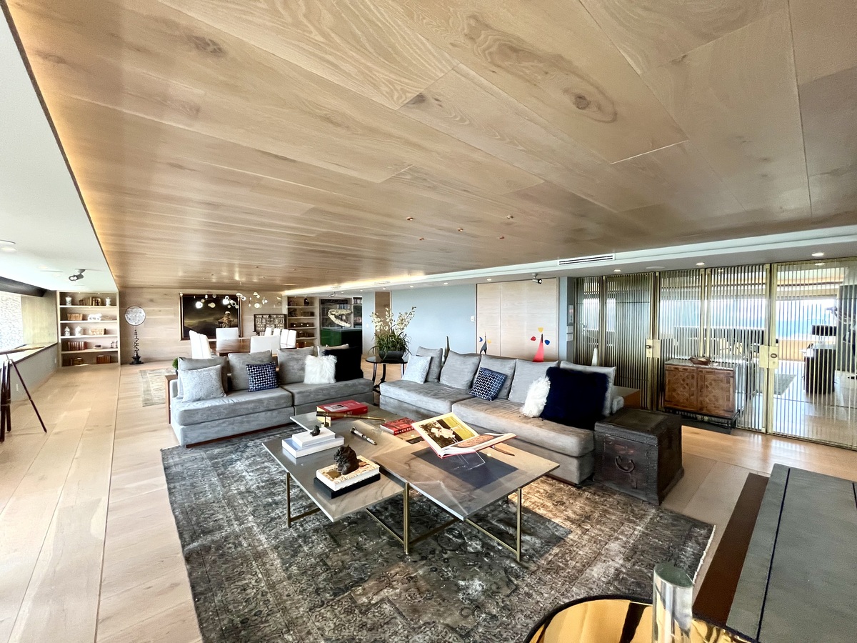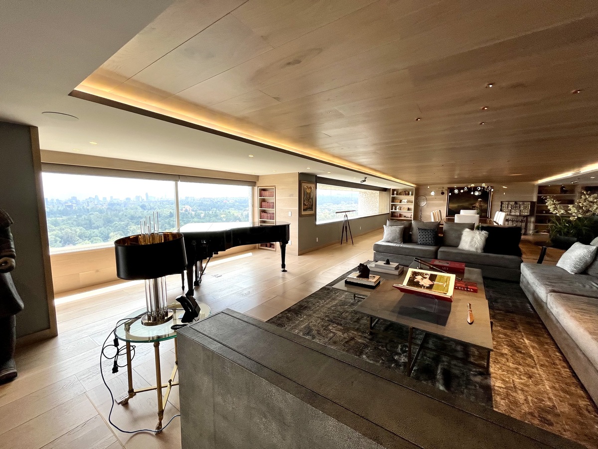 Cuenta con 2 recámaras, 2.5 baños, amplia estancia con vista panorámica, oficina, sala de TV, cuarto de lavado y de servicio y3 lugares de estacionamiento. Sistema de luz y sonido.