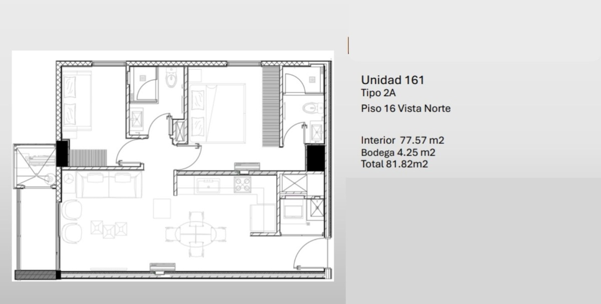 Tipo 2A: 77.57 m² + 4.25 m² de bodega