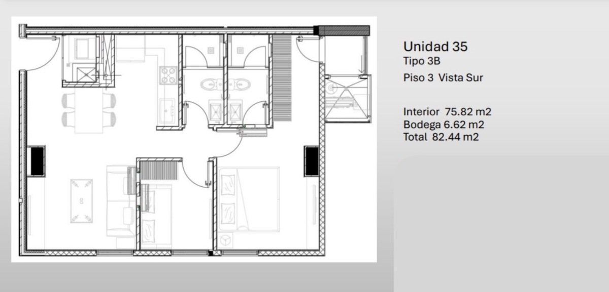 Tipo 3B: 75.82 m² + 6.62 m² de bodega