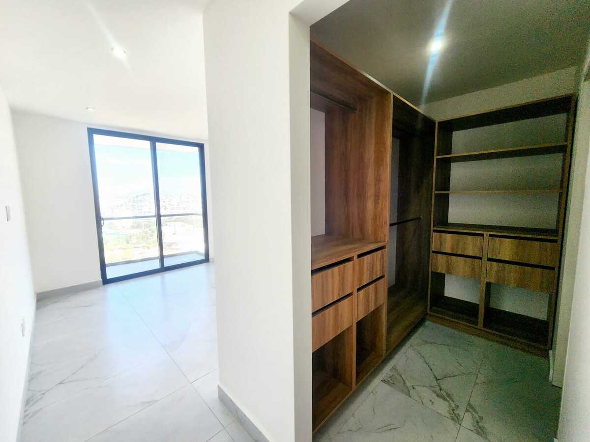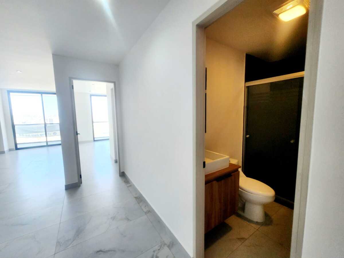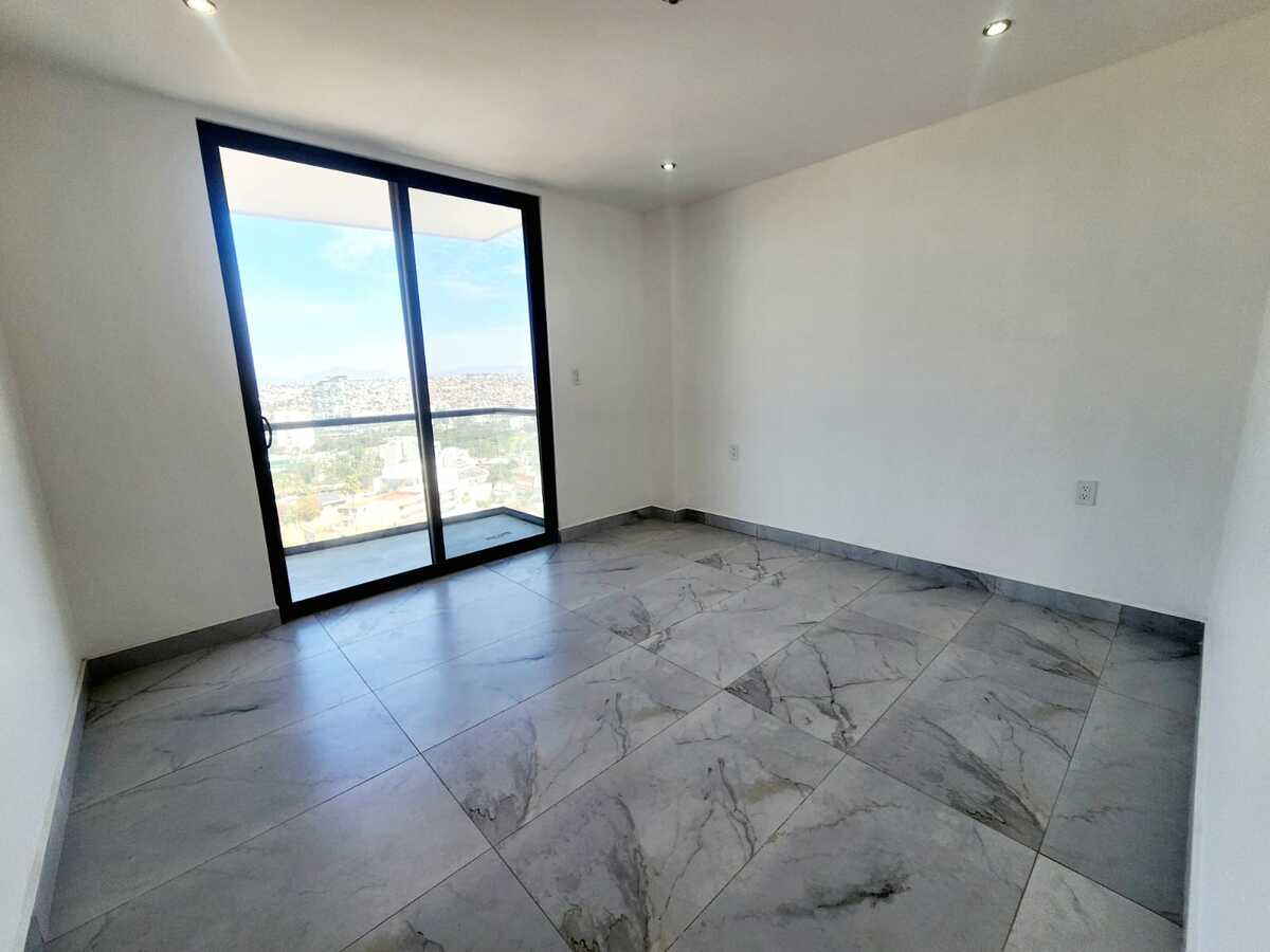Estrena hermoso departamento con vista panorámica a la ciudad. Cuenta con una cocina integral equipada con electrodomésticos, barra desayunador y un amplio espacio para sala y comedor, ideal para disfrutar de la luz natural. Dispone de un amplio balcón con espectacular vista panorámica. La recámara principal tiene acceso directo al balcón, walk-in closet y baño completo. La recámara secundaria cuenta con clóset de pared y comparte un baño completo. Además, incluye cuarto de lavado y dos lugares de estacionamiento techados con acceso mediante portón eléctrico. El edificio ofrece excelentes amenidades como gimnasio, sala de home office, terraza con salón de usos múltiples y área de asador, además de elevador y seguridad las 24 horas. Ubicado en una zona privilegiada, muy cerca de mercados, colegios y con fácil acceso a principales vías de comunicación.