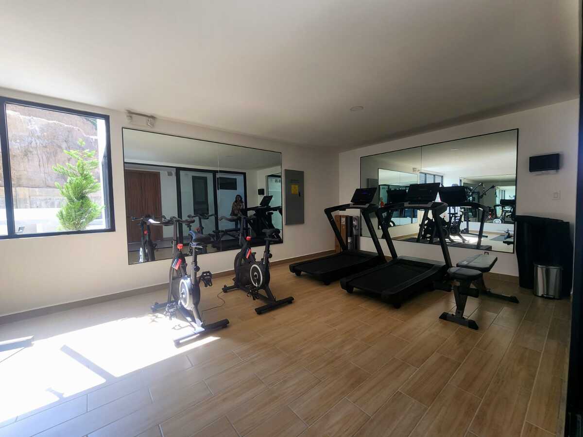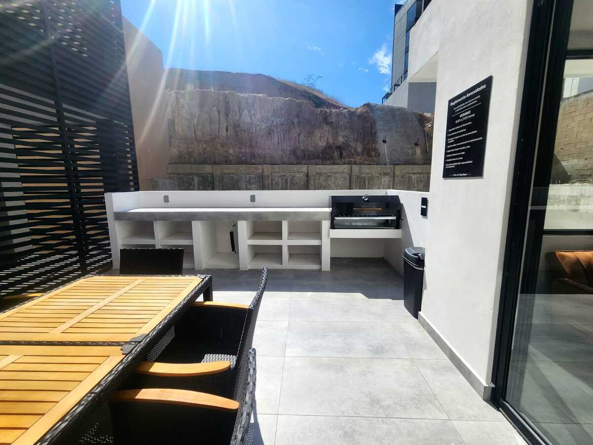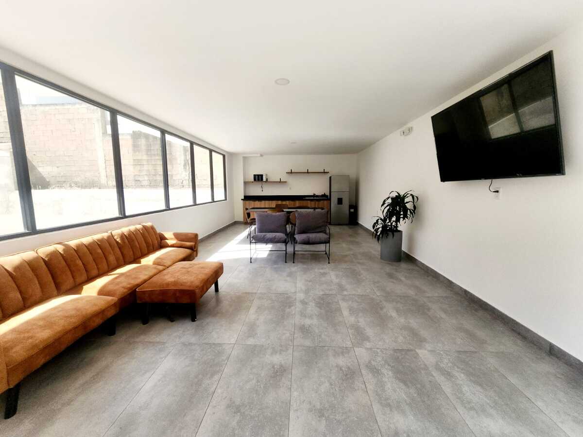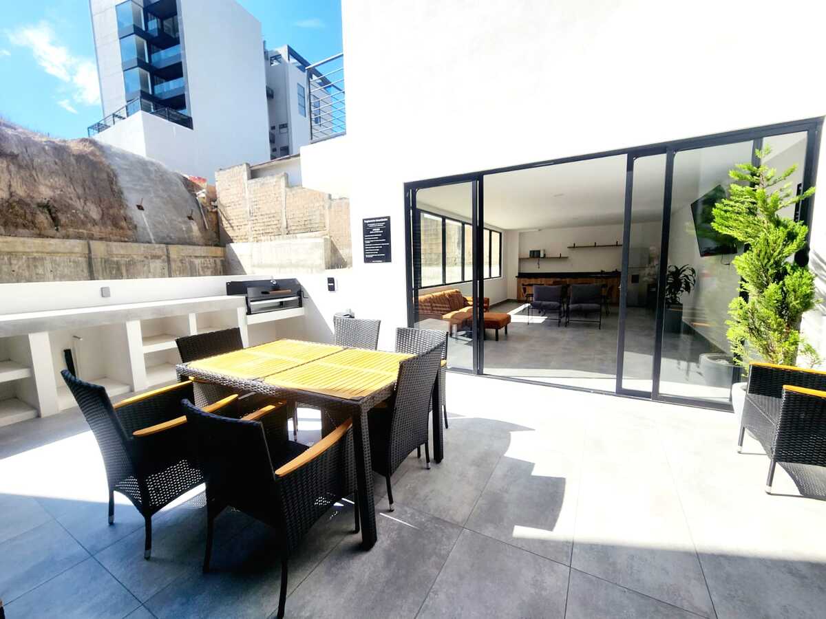 Estrena hermoso departamento con vista panorámica a la ciudad. Cuenta con una cocina integral equipada con electrodomésticos, barra desayunador y un amplio espacio para sala y comedor, ideal para disfrutar de la luz natural. Dispone de un amplio balcón con espectacular vista panorámica. La recámara principal tiene acceso directo al balcón, walk-in closet y baño completo. La recámara secundaria cuenta con clóset de pared y comparte un baño completo. Además, incluye cuarto de lavado y dos lugares de estacionamiento techados con acceso mediante portón eléctrico. El edificio ofrece excelentes amenidades como gimnasio, sala de home office, terraza con salón de usos múltiples y área de asador, además de elevador y seguridad las 24 horas. Ubicado en una zona privilegiada, muy cerca de mercados, colegios y con fácil acceso a principales vías de comunicación.