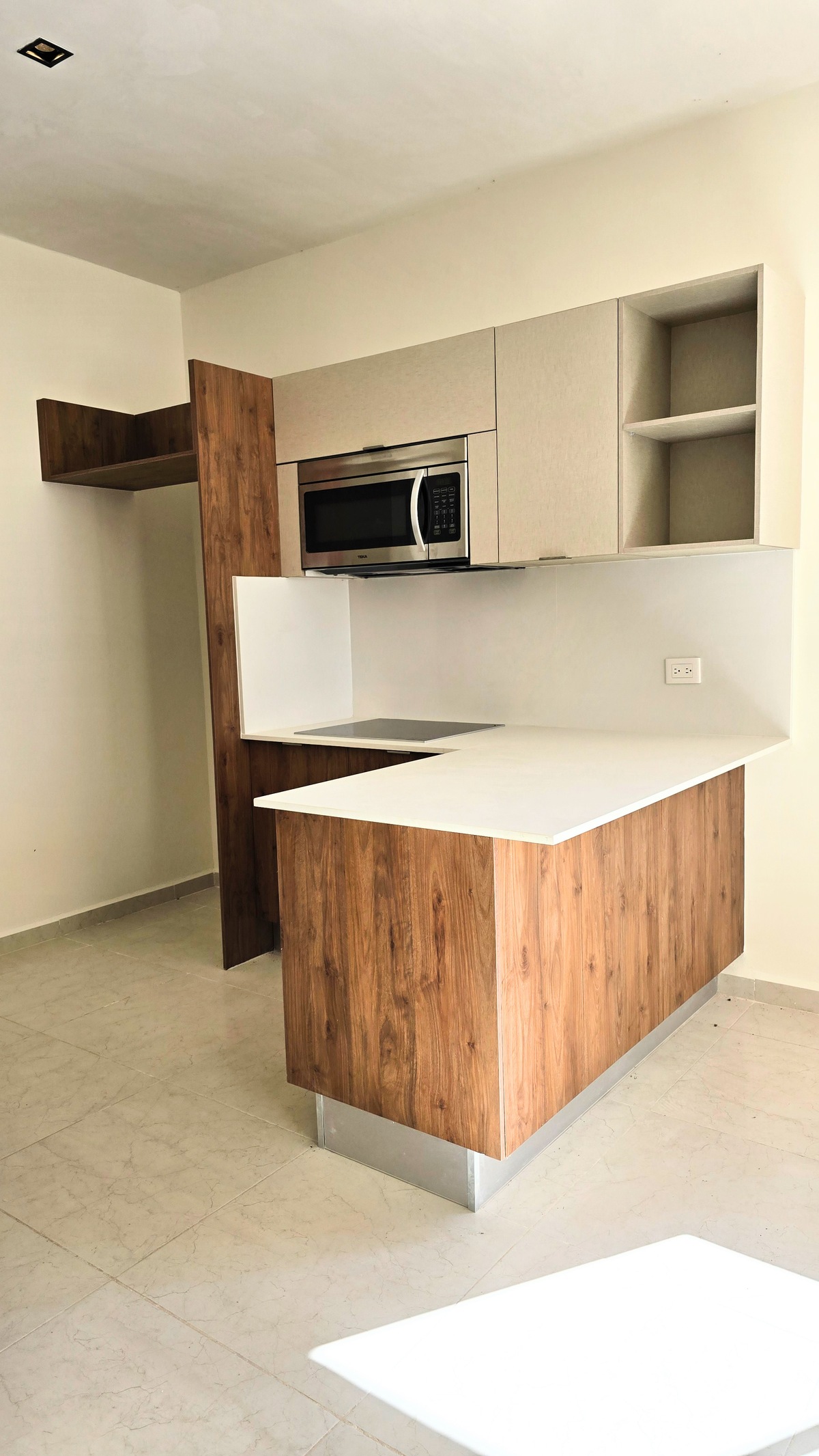 Cocina integral con barra de cuarzo