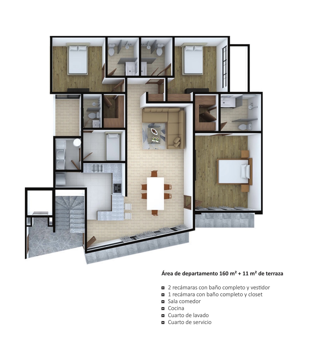 • 2 recámaras con baño completo y vestidor