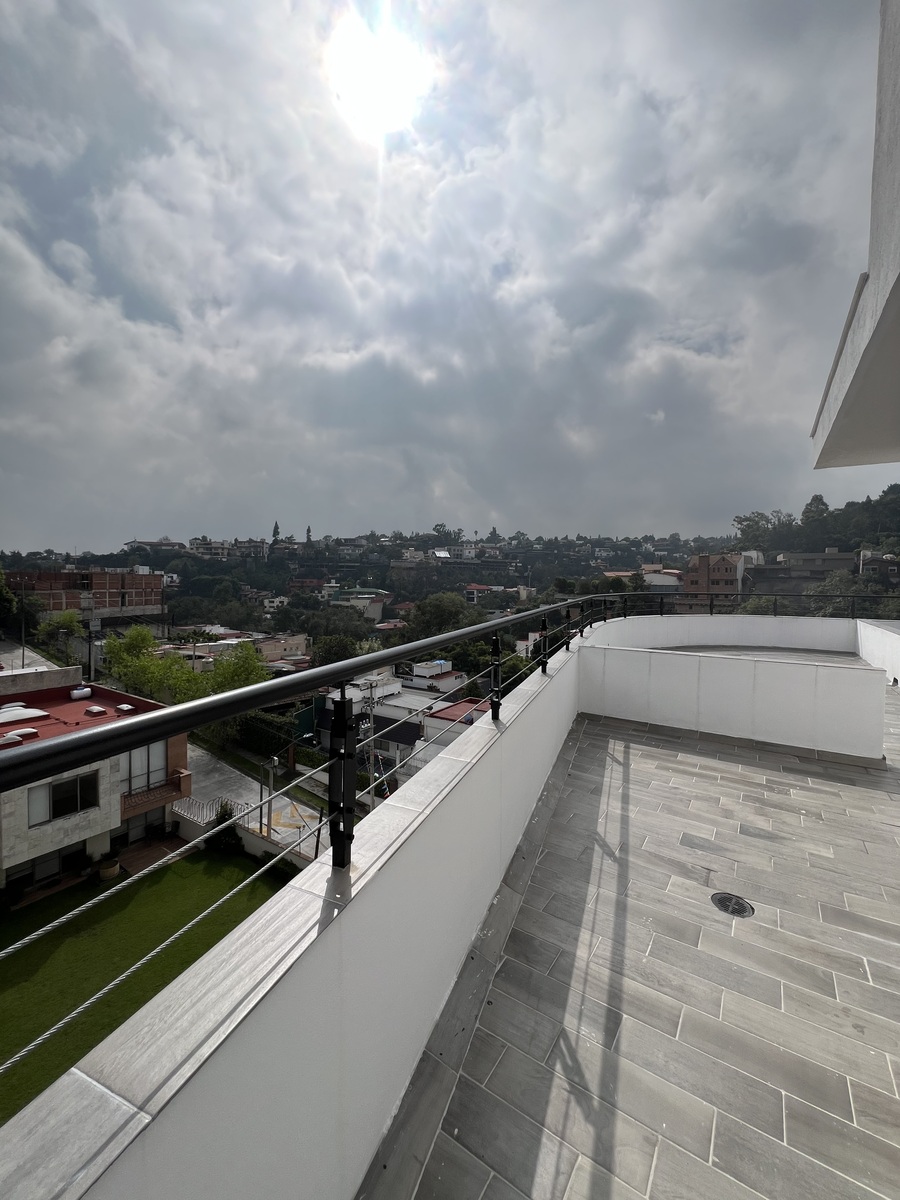 Hermoso departamento con acabados de lujo, ubicado en una calle tranquila de Lomas de Tecamachalco, con vistas espectaculares y un roof garden privado. ¡Una verdadera joya que combina comodidad, elegancia y exclusividad!