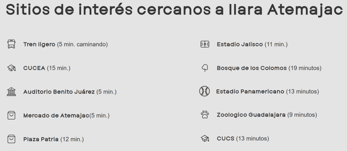 Ilara Atemajac combina identidad, modernidad y conectividad. . Su ubicación estratégica — a 15 pasos del Tren Ligero y a menos de 20 min de CUCEA, Plaza Patria y el Estadio Jalisco— lo convierte en una oportunidad de inversión con alta plusvalía y demanda constante de renta.