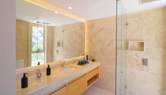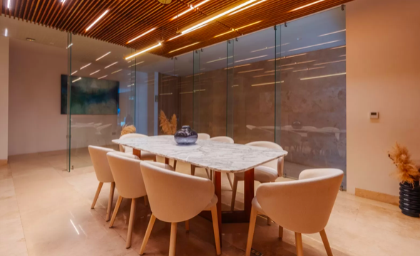 En cada residencia, sobresalen las puertas de roble de piso a techo, los ventanales de doble cristal templado con Sentryglas, muros interiores de concreto, muros dobles con aislante acústico entre departamento y departamento, por un proyecto diseñado con ingeniería avanzada para resistir fenómenos climáticos extremos, garantizando seguridad, elegancia y confort en cada espacio.