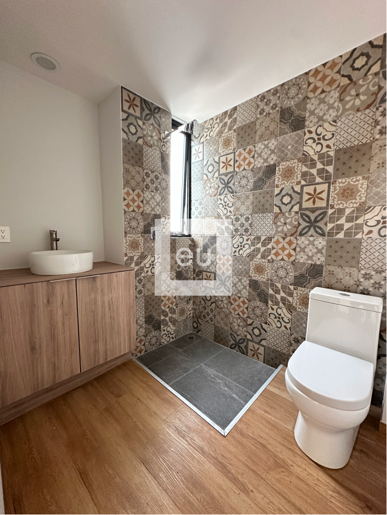 Nice brand new apartment with exterior views on the 4th floor, in a completely new building, it is on one level, it has a full open kitchen with a granite-topped bar, a brightly lit social area with access to the open terrace, it has a semi-open room with a closet, a full bathroom with natural ventilation. The building has a common laundry, a common roof garden equipped with a barbecue and table, a small gym, elevator and security with a doorman.