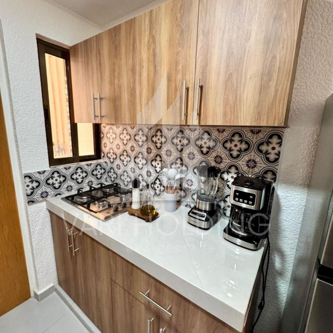 El departamento cuenta con una distribución funcional que aprovecha al máximo cada espacio. Al ingresar, se encuentra una luminosa estancia que integra sala y comedor, creando un ambiente confortable y acogedor. La cocina, completamente equipada, ofrece un diseño práctico y moderno, ideal para quienes disfrutan de un estilo de vida funcional. Dispone de dos amplias habitaciones bien ventiladas, un baño completo y un área de lavado independiente que brinda mayor comodidad.