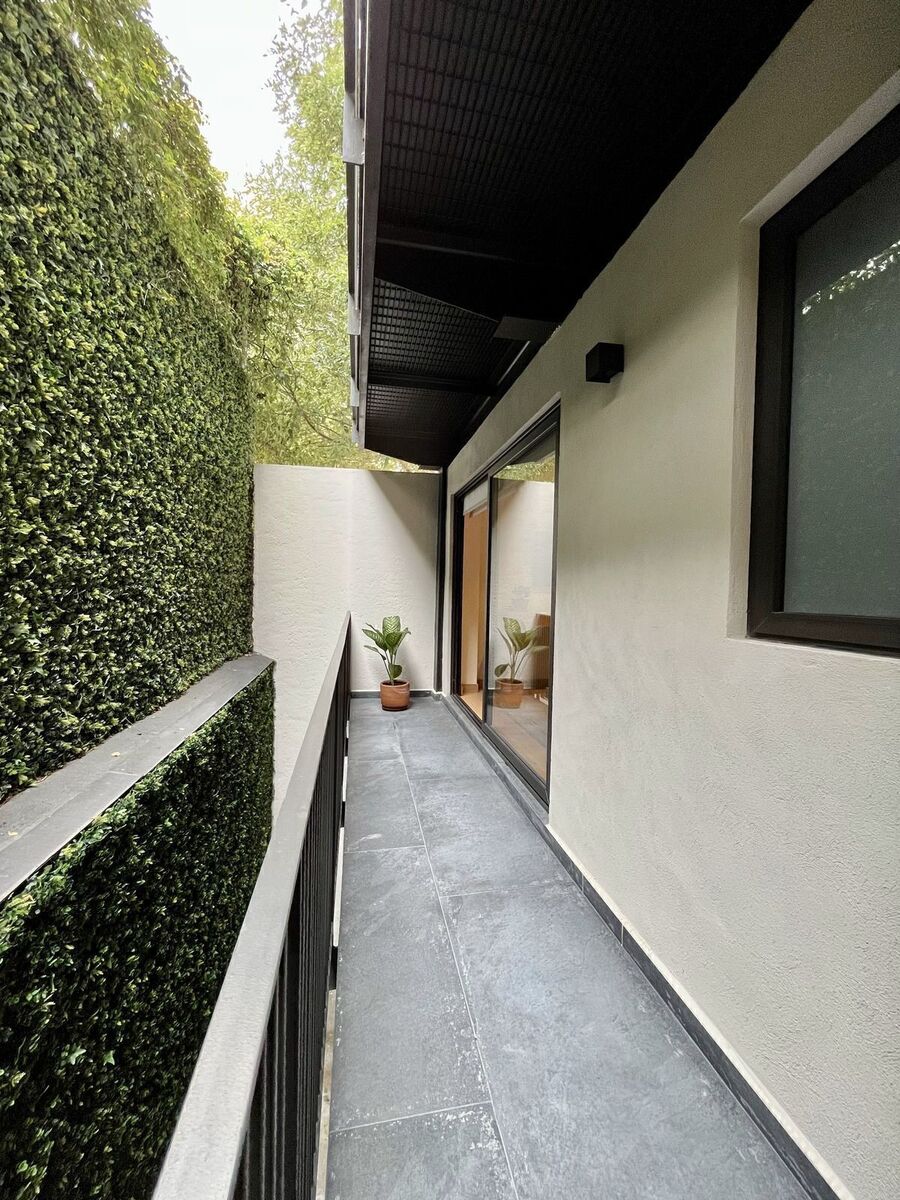 En la habitación principal, podrás disfrutar de un pequeño balcón privado para momentos de tranquilidad.