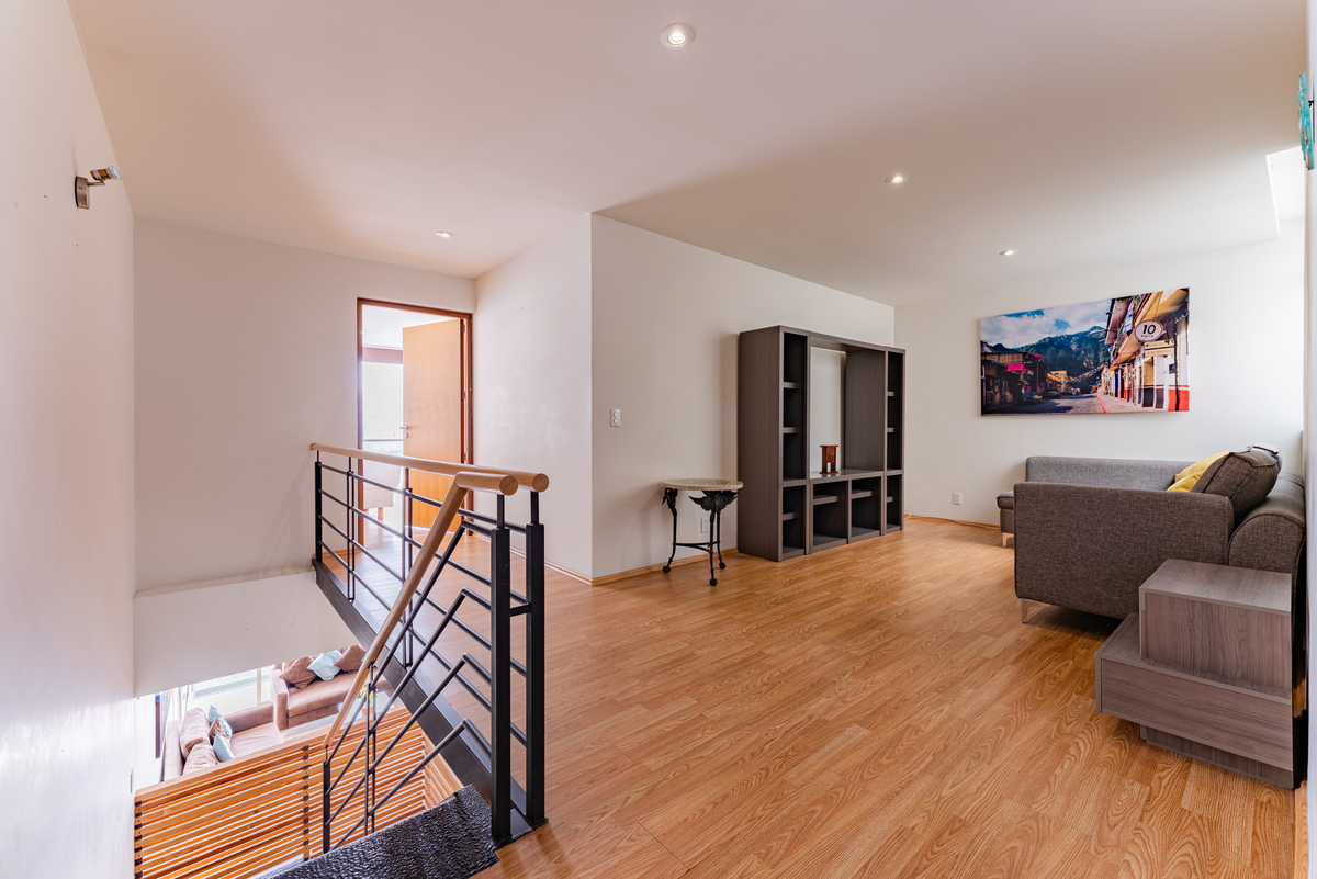 El segundo nivel incluye un área versátil tipo family room, perfecta para adaptar como oficina, sala de TV o área de descanso adicional.