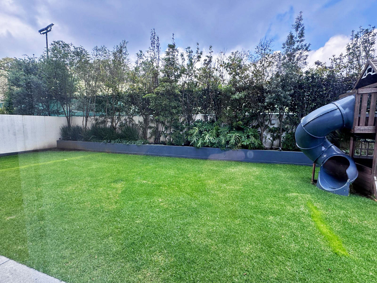 Este departamento se encuentra dentro de uno de los mejores conjuntos de Bosques, ubicado en planta baja, es de los únicos que tienen techos de mas de 3 metros de altura, dando una sensación de amplitud y hermosa vista al jardín privado de 180mts, también cuenta con una terraza perfecta para poner una mesa y un asador!