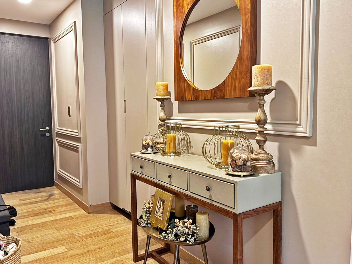 Todo el departamento tiene acabados de lujo, pisos de madera de ingeniería, mármol en baños, ventanas que bloquean el ruido y molduras de madera en la mayoría de las paredes así como muebles y carpintería que hacen que el departamento está listo para entrar!