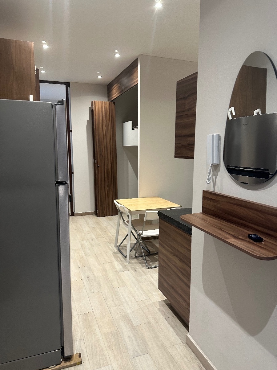 1 recámara 1 baño40 mts amueblado equipado con roof comunal lavadora secadora por afuera 15 mil con mantenimiento incluido y agua gas incluido