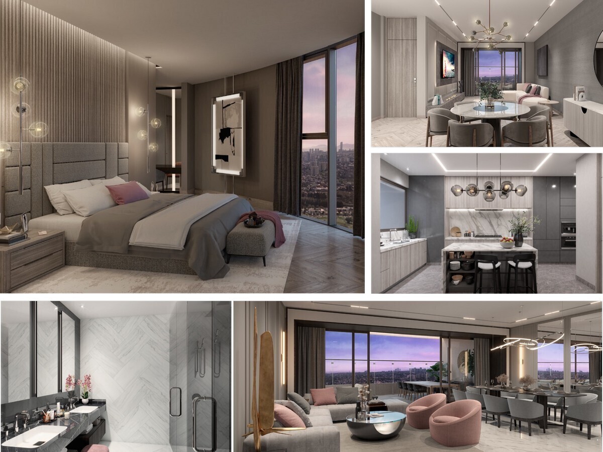 Diseño arquitectónico único e impresionantes terrazas que ofrecen magníficas vistas a las montañas y al campo de golf.