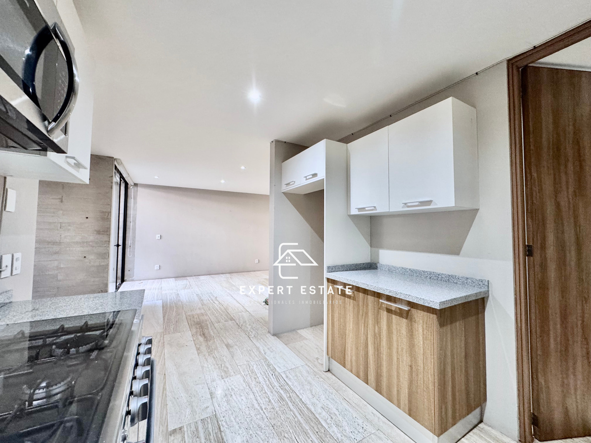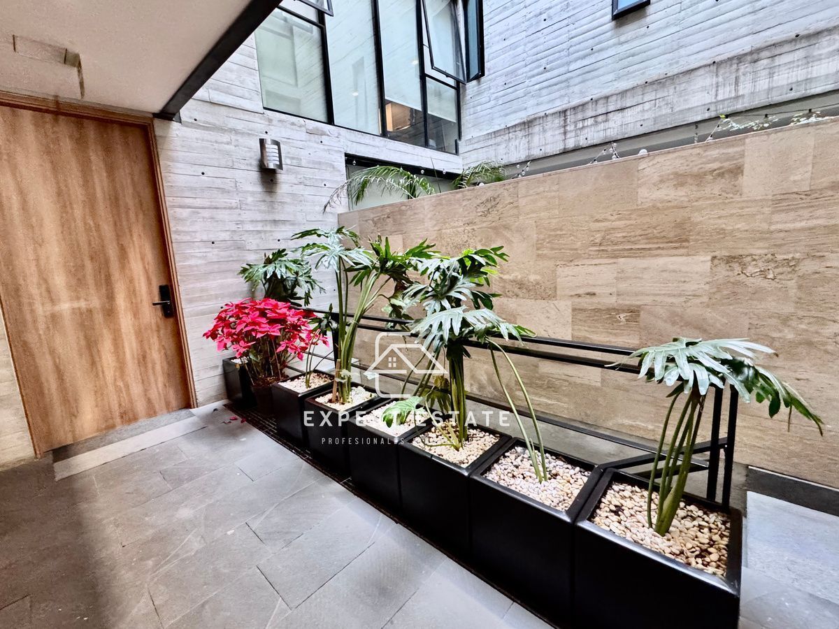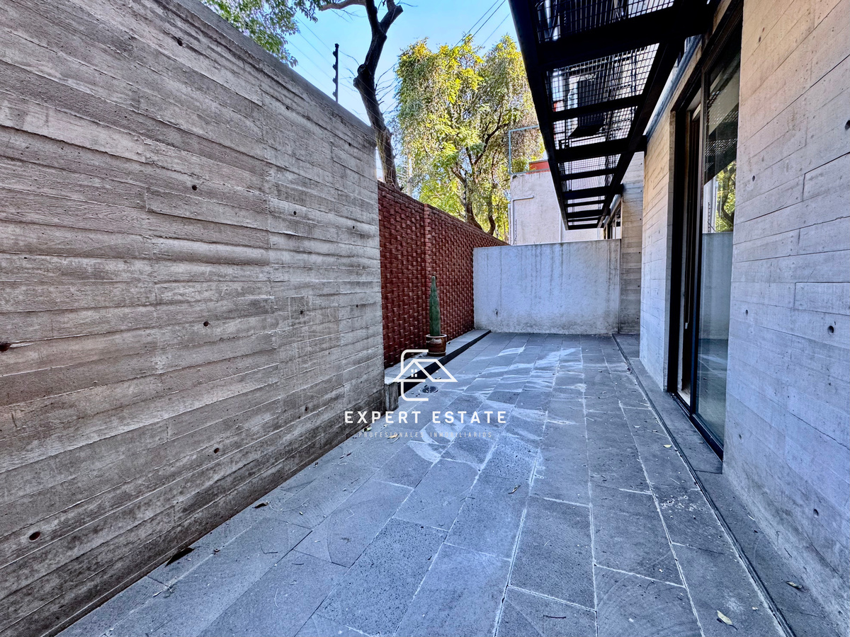 Look at this great apartment with a super terrace! Beautiful, safe and very well located studio on the ground floor of a building of only 5 levels. It has 70 m2 of living area plus an extraordinary 30 m2 terrace, in the Cuauhtemoc neighborhood, one of the most traditional areas of the city. Building of modern and avant-garde design, just streets from Paseo de la Reforma, the tourist corridor, commercial and financial centers, as well as schools, restaurants, hotels, galleries, theaters and more. It consists of a bright living/dining room and a very pleasant terrace that perfectly integrates into the social area. It has a beautiful open equipped kitchen with granite countertops, as well as a practical laundry area. Fall in love with this very comfortable studio with enough space for a king size bed, walk in closet and integrated bathroom. It has 24/7 security, cctv and 2 parking spaces. Let's go see it, you'll love it.
