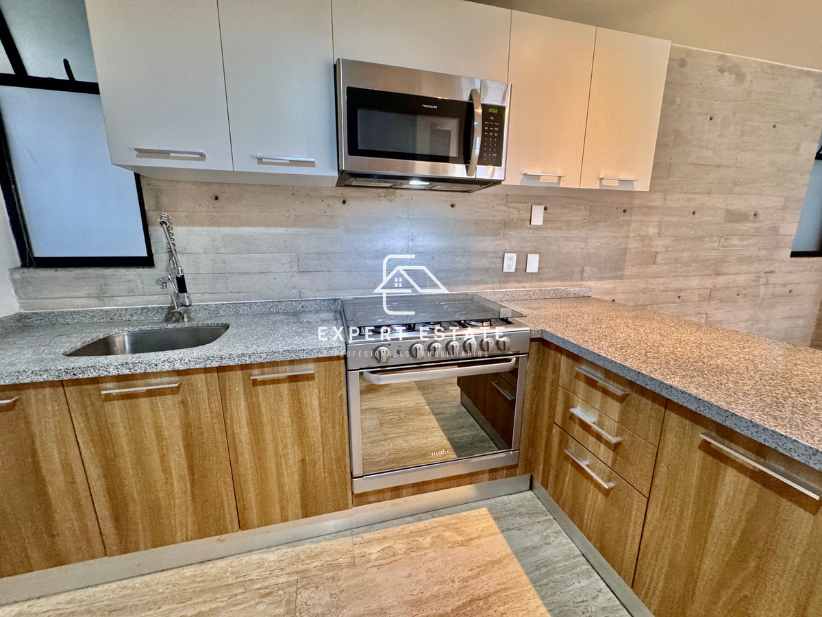 Live close to everything in this beautiful, safe, and conveniently located pre-owned apartment on the 2nd floor of a 5-story building. It's located in the Cuauhtemoc neighborhood, one of the city's most traditional areas. This building boasts a modern and avant-garde design, just blocks from Paseo de la Reforma, the tourist corridor, shopping and financial centers, as well as schools, restaurants, hotels, galleries, theaters, and more. It features a bright living room with a beautiful and very useful built-in bookcase and a pleasant balcony that blends perfectly into the living area. It has a beautiful open kitchen equipped with granite countertops, 2 comfortable bedrooms, the master with a walk-in closet and an ensuite bathroom, and the other with a closet that shares a bathroom with the living area. A practical laundry area and 2 parking spaces with car lifts are available. The building has 24/7 security and CCTV. Call Elisa Mendez today and we'll come see it. Don't let them beat you to it!