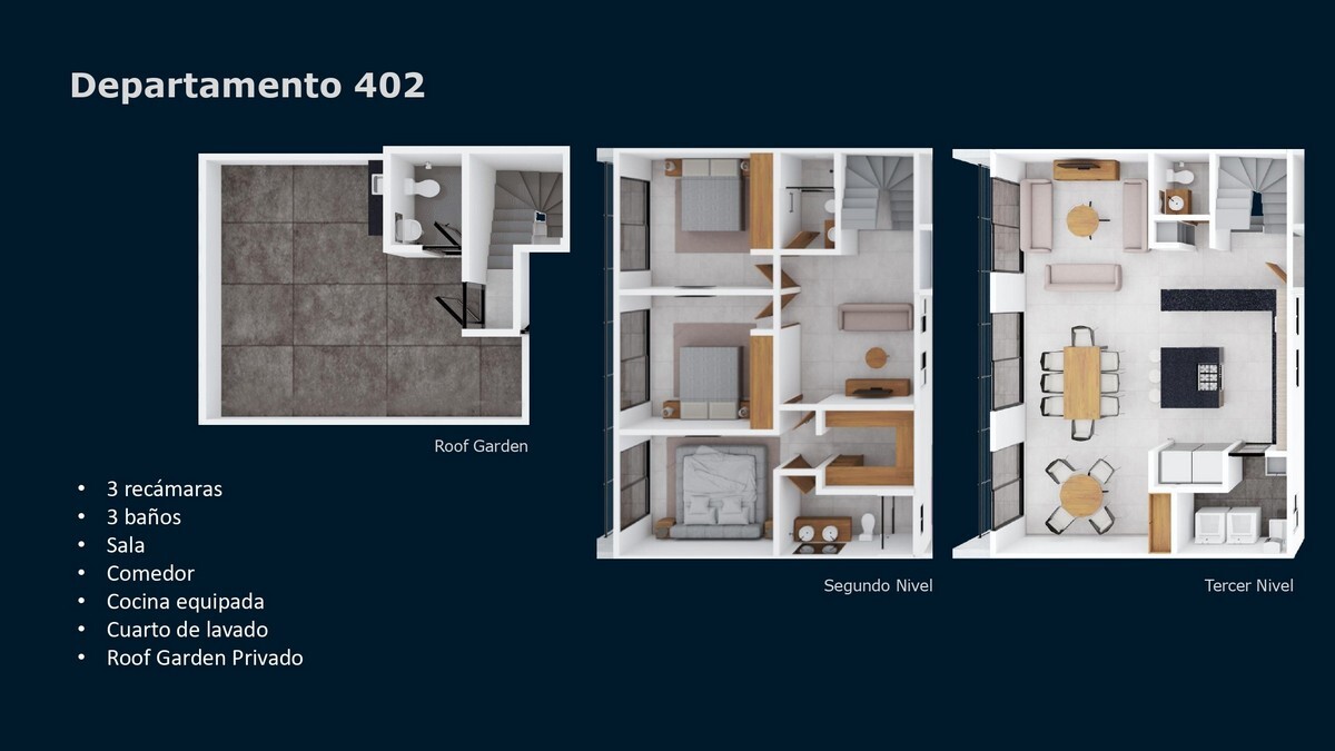 Desarrollo de 1 torre con 4 niveles que ofrece seguridad y confianza, con espacios habitables confortables.