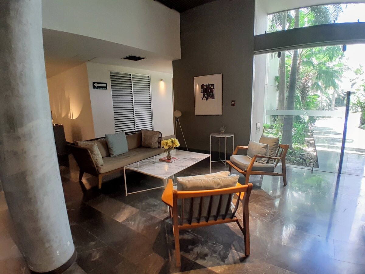 Departamento en venta con muebles, ubicado en Torre Atlántida dentro del complejo Vía Montejo, cerca de la carretera Mérida-Progreso, centro comercial The Harbor, Galerias, a 20 minutos de las playas de Mérida, Colegio Montejo, y todos los servicios.