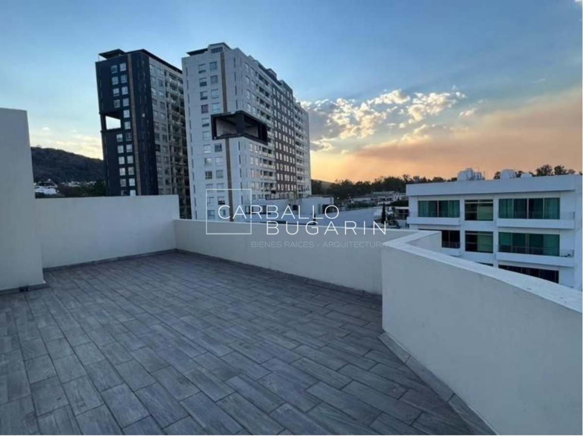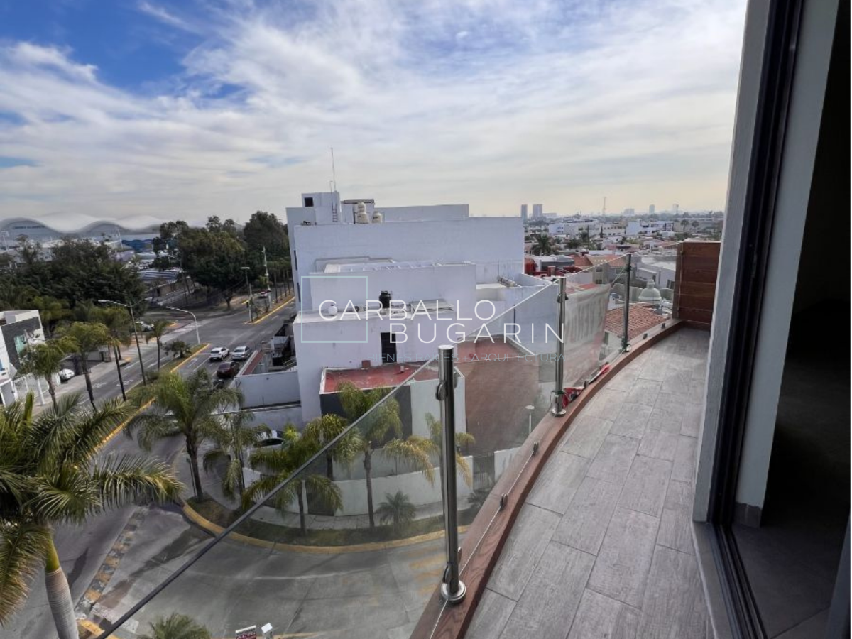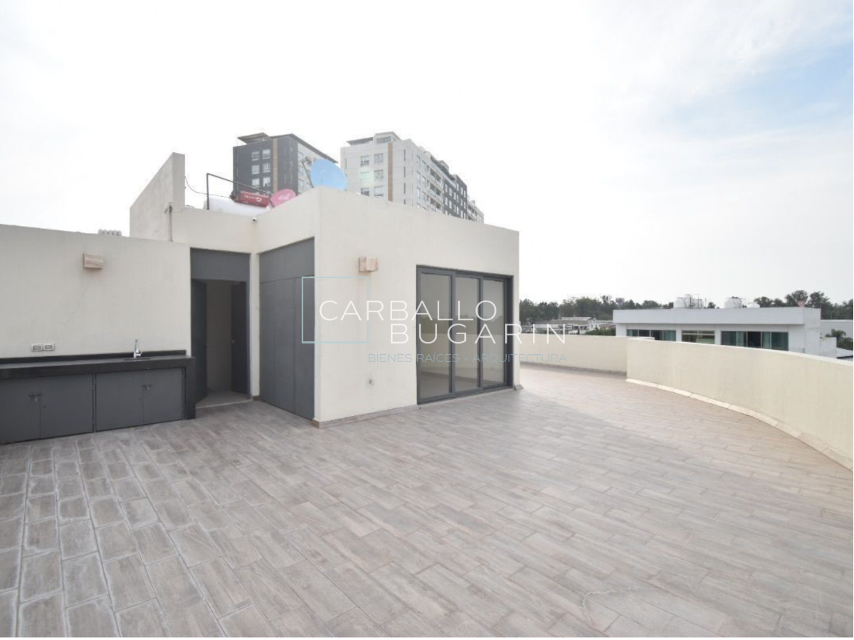 Ubicado en el piso más alto (4to nivel) con elevador, amplio balcón y terraza en roof.
