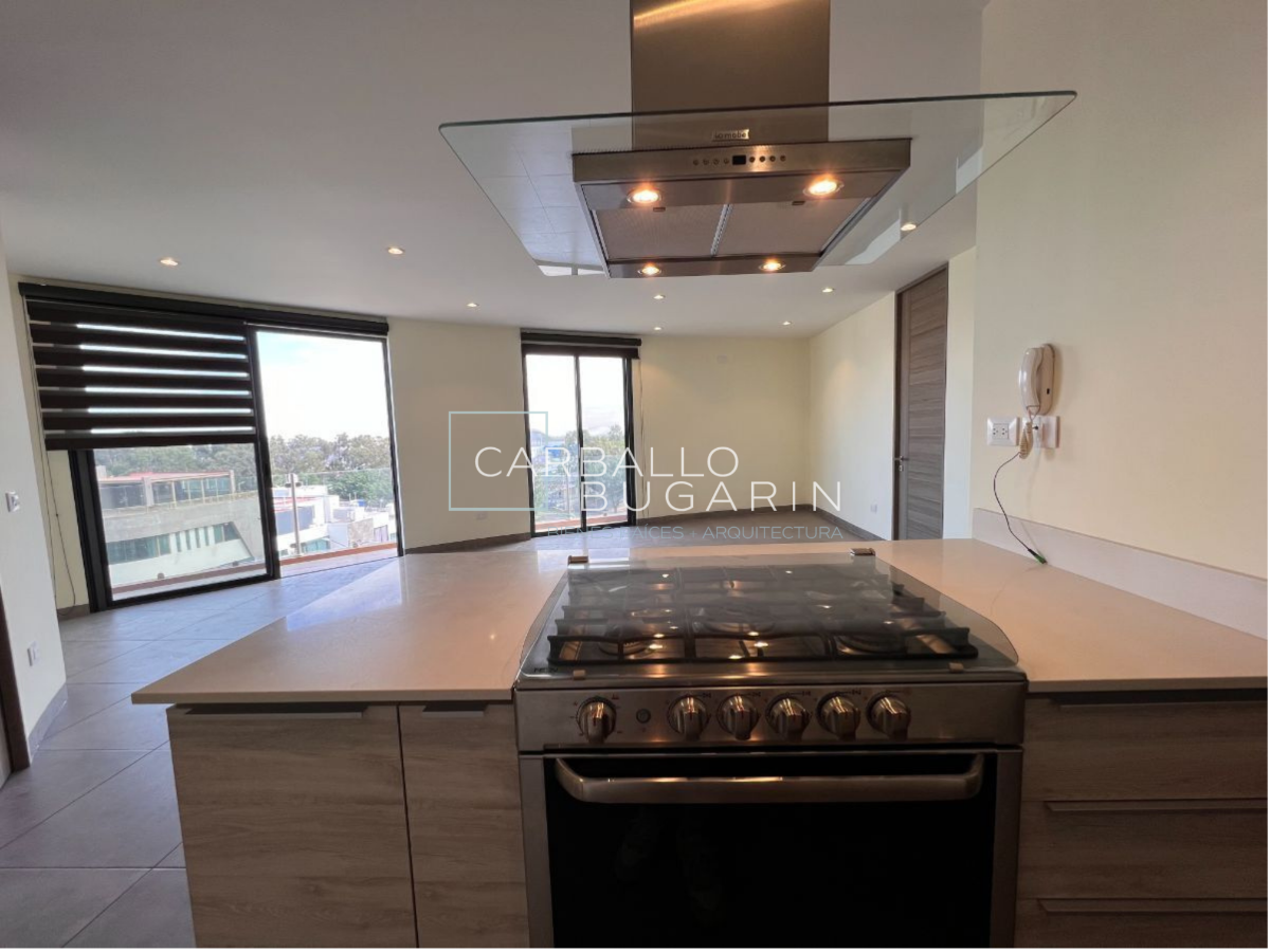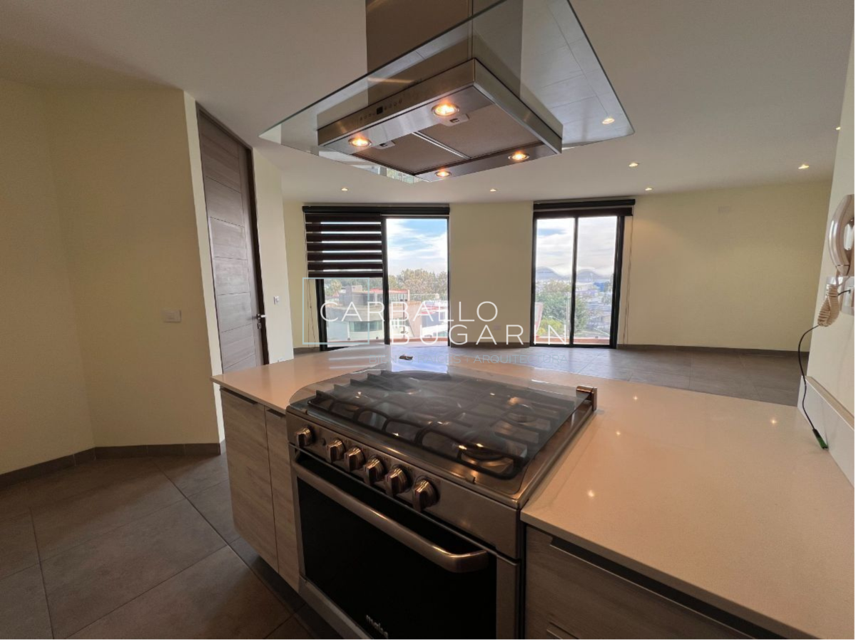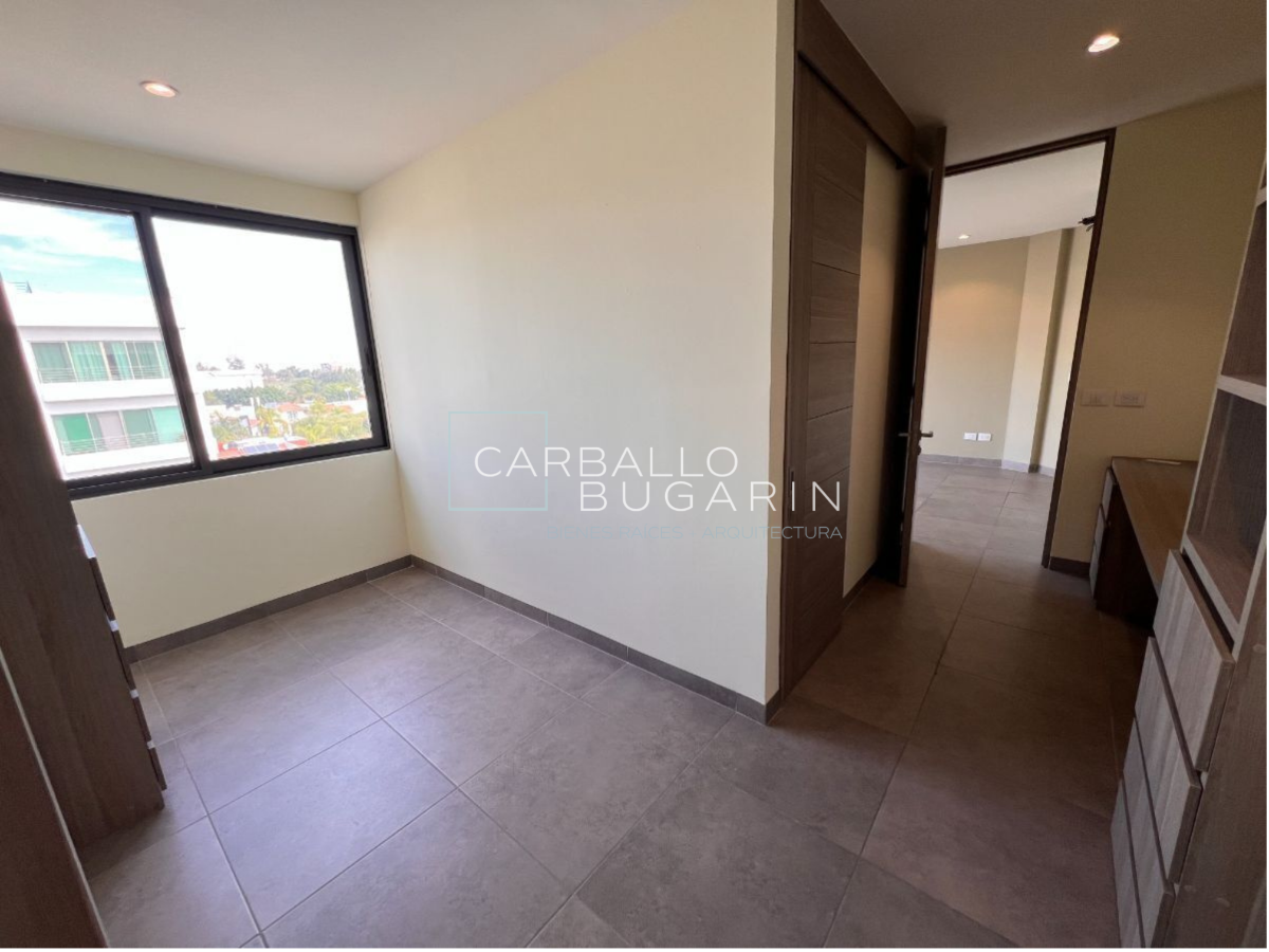 Ubicado en el piso más alto (4to nivel) con elevador, amplio balcón y terraza en roof.