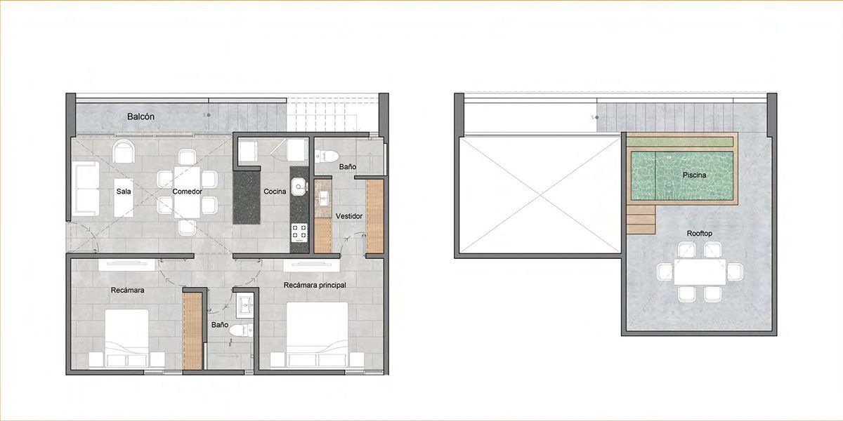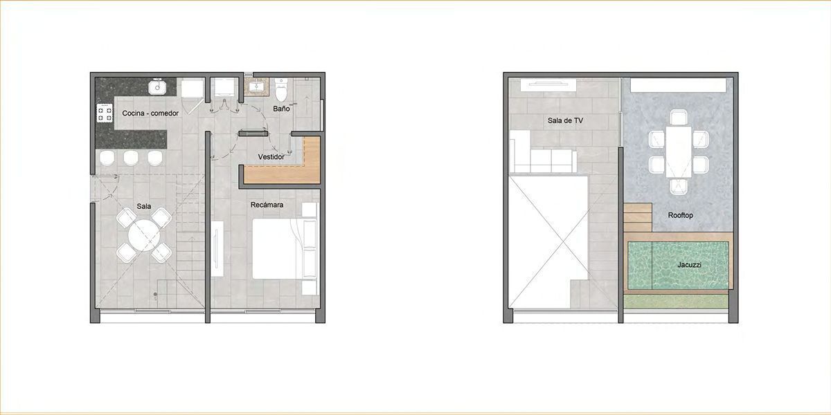 1 recámara - 102 m2 desde $2,774,000 con roof top