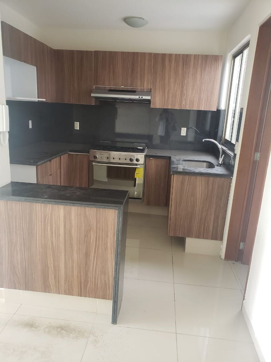 Sala, comedor, cocina, dos habitaciones con baño con canceles de cristal templado, sala de televisión o con opción a una trecera tercera recamara, cocina abierta con barra de granito, área de servicio, calentador, balcón.