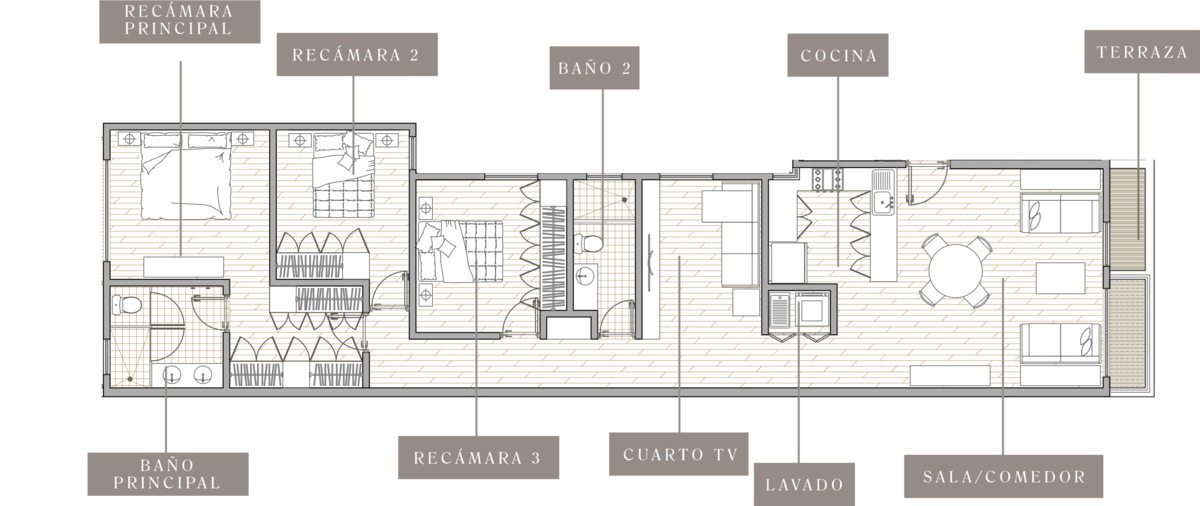 Tu nuevo hogar te espera en 10 meses. Este increíble departamento en preventa cuenta con 3 amplias recámaras, un cuarto de televisión, 2 baños completos, un práctico cuarto de lavado y una terraza perfecta para relajarte.