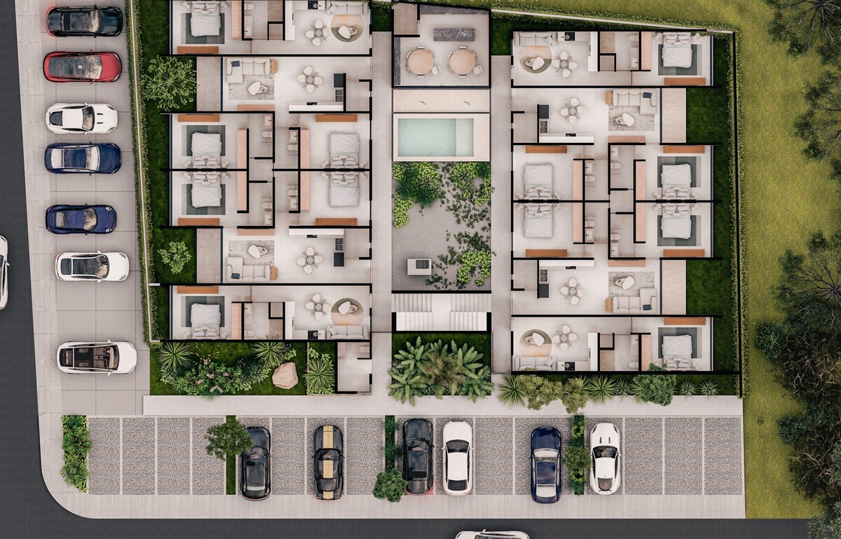 Departamentos es un desarrollo habitacional ubicado en Cholul, al norte de Mérida, dentro de una zona con alta plusvalía y en constante crecimiento residencial y comercial.