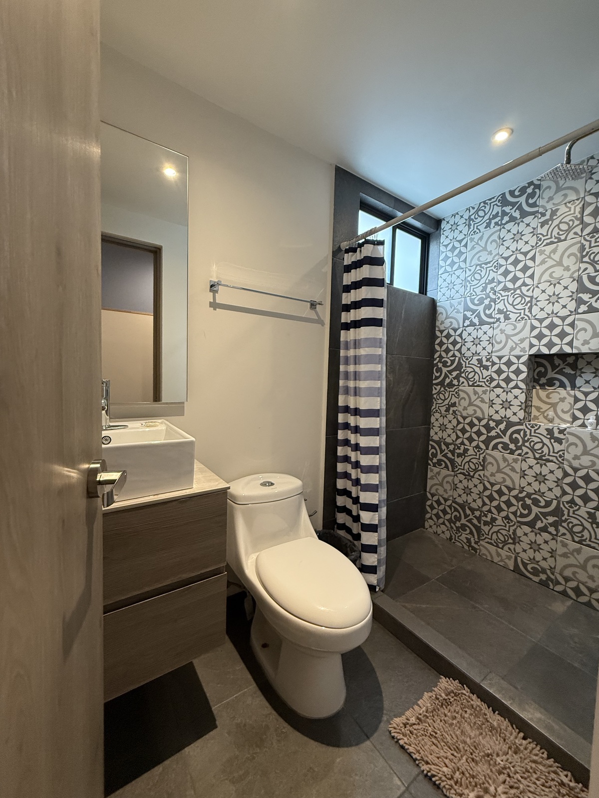 El edificio tiene vigilancia 24/7, elevador y roof garden común.