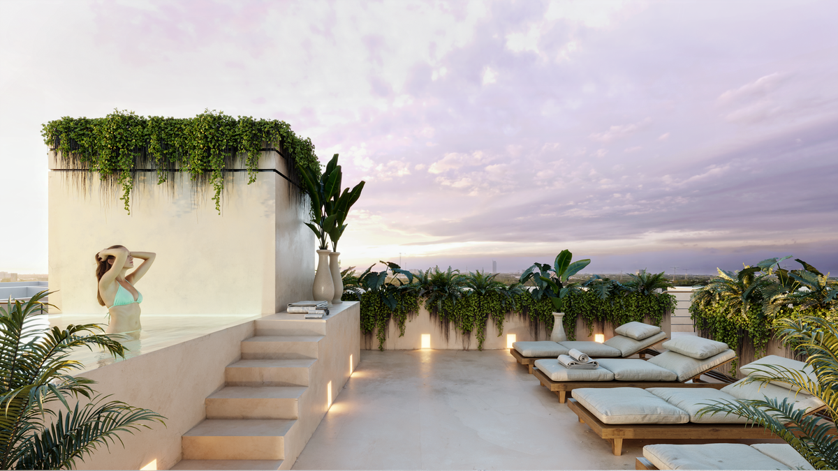 . Roof Top con alberca y camastros.