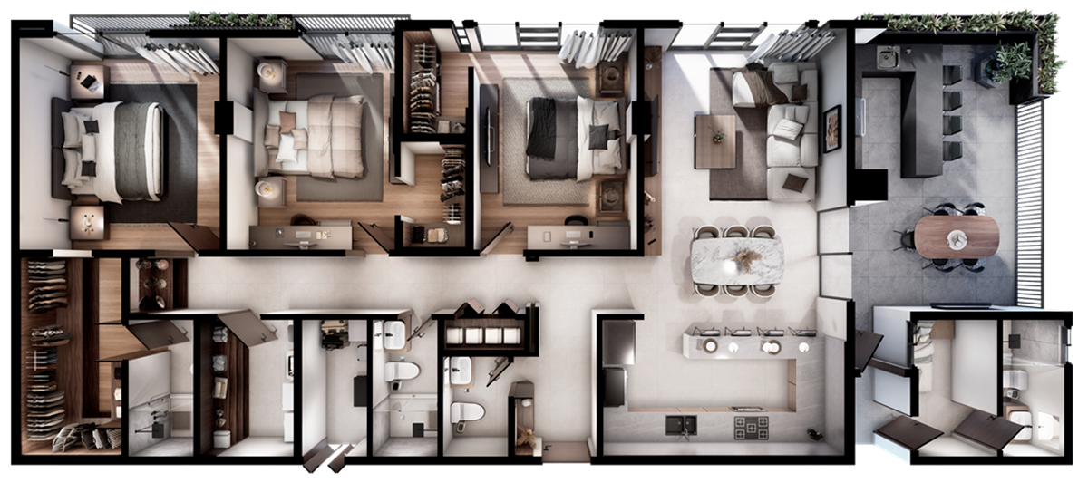 PENTHOUSE B: 130.69 m2 - 117.63 m2 interior + 13.06 m2 balcón