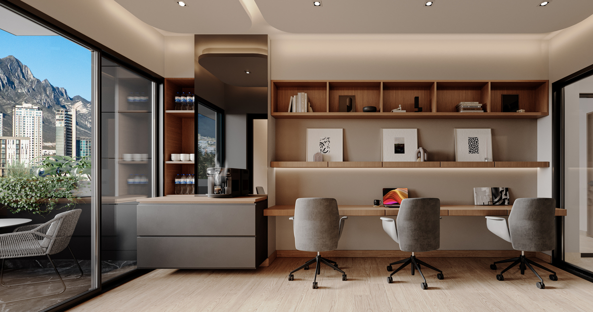 Amenidades: Se incluirán espacios de coworking, como dos cabinas (booths), una sala de juntas, áreas de trabajo