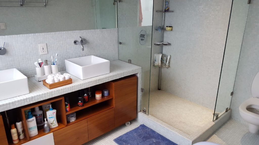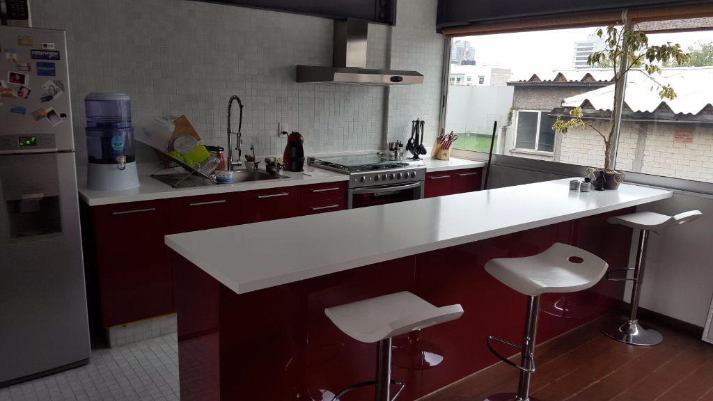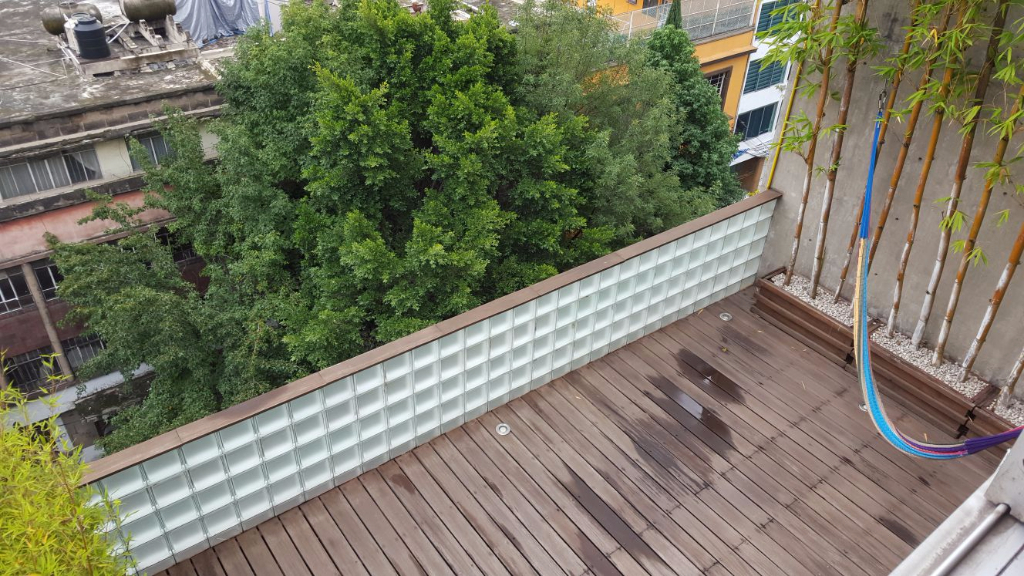 Roof garden con asador, tarja, jacuzzi, y área techada con madera de teka y vidrio templado
