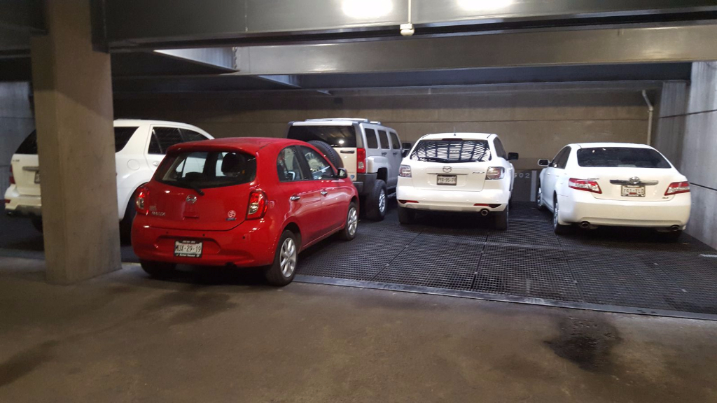 2 cajones de estacionamiento en línea techados y área para moto y bici.