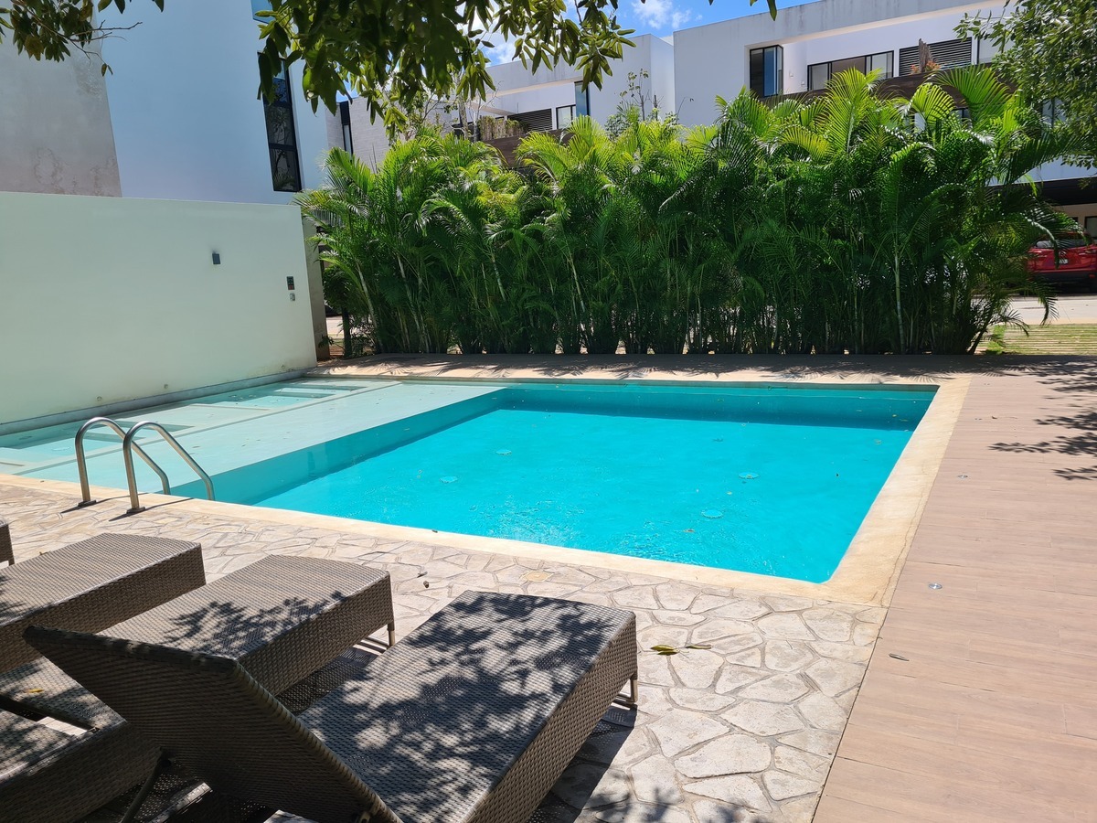 Magnífico departamento amueblado y equipado en privada ZEN en 2o nivel, cuenta con 1 recamara, closet vestidor y baño, sala-comedor, amplia terraza, area de lavado y tendido. Garage para 1 coche techado.. Cuenta con amenidades tales como caseta de vigilancia 24/7, piscina, terraza, salón de usos múltiples con baños, estacionamiento para visitas.