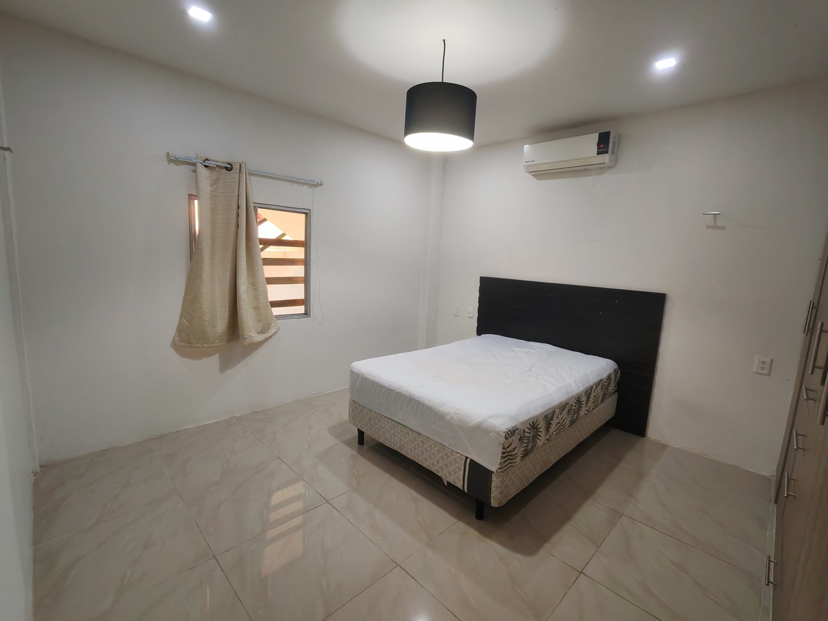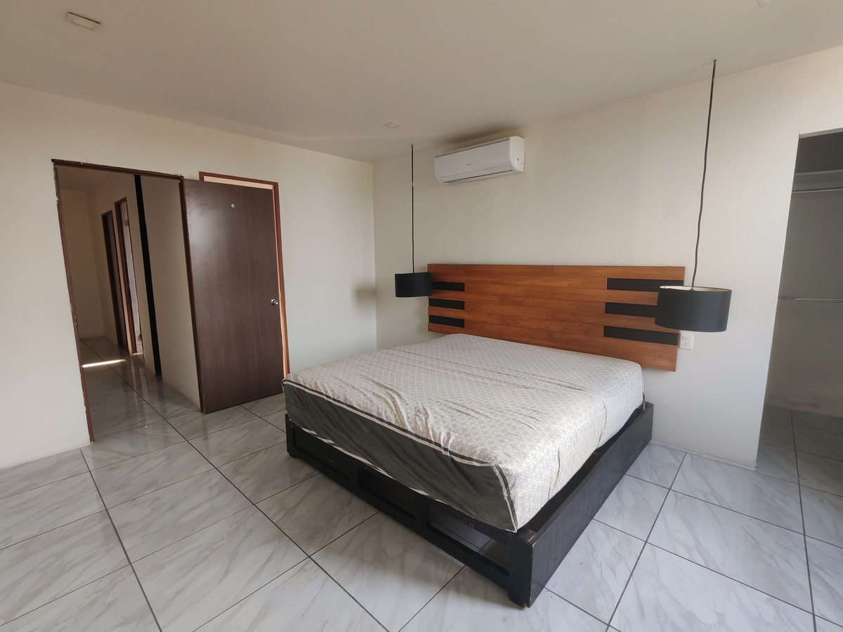 Recámara secundaria con cama matrimonial, aire acondicionado y closet