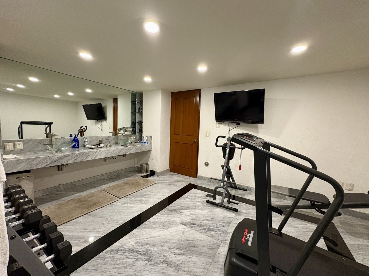 • Recámara principal tipo suite: gran vestidor, sala privada con balcón, baño con vapor y área de gimnasio