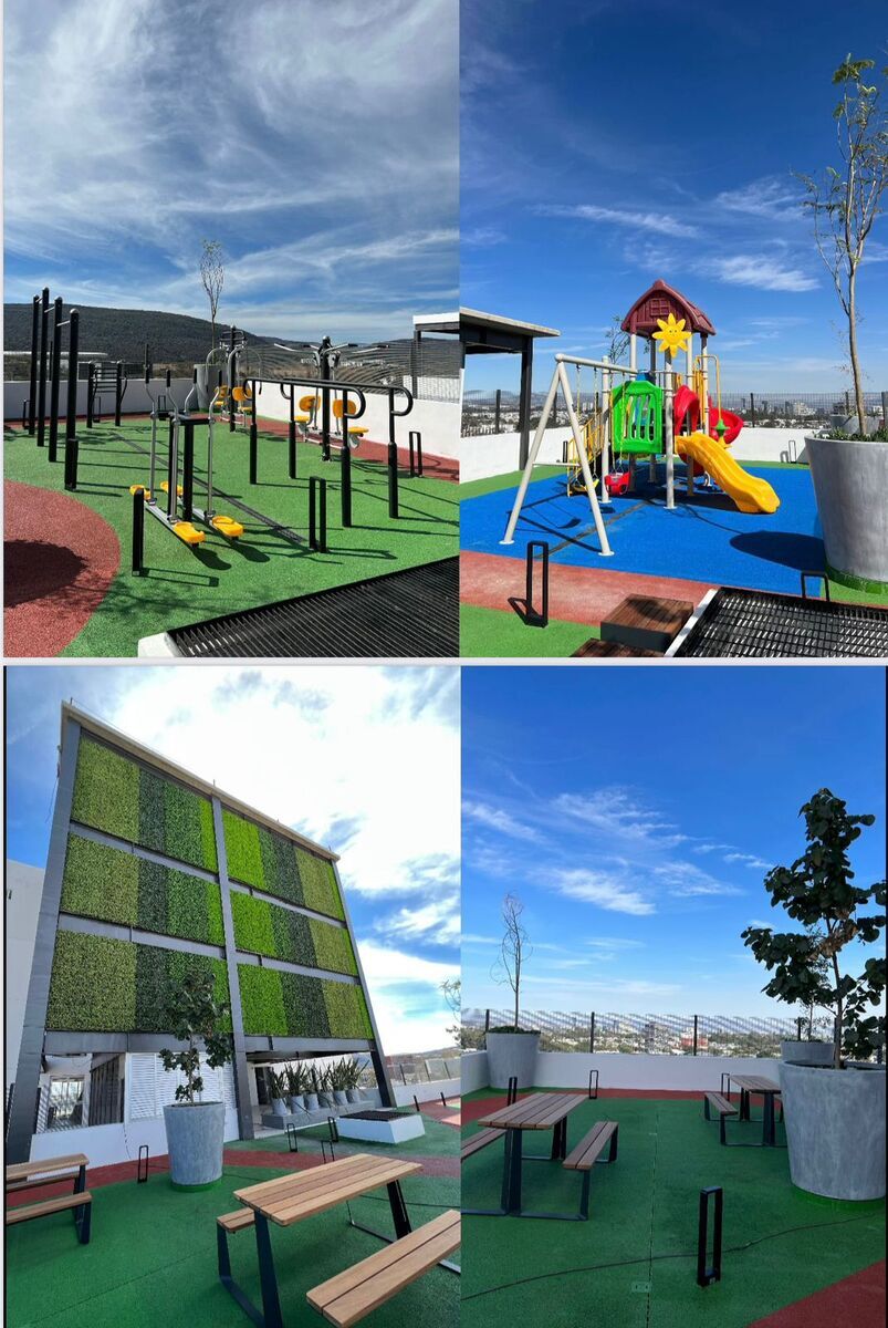 Torre con vigilancia, estacionamiento en sótano, amenidades como gimnasio, área de coworking, salón privado, juegos infantiles, terraza en rooftop y más.
